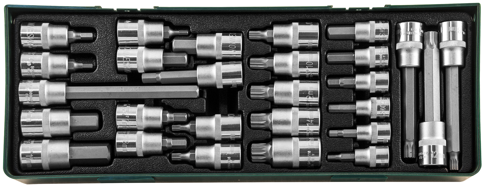 Содержание: 1/2’’DR: НЕХ L=55 мм: Н4, Н5, Н6, Н7, Н8, Н10, Н12, Н14; НЕХ L=70 мм: Н8, Н17; НЕХ L= 140 мм: Н10; SPLINE L=55 мм: М5, М6, М8, М10, М12, М14, М16; SPLINE L=110 мм: М10, М12; SPLINE L=120 мм: М8; 3/8’’DR: НЕХ L=50 мм: Н4, Н5, Н6, Н7, Н8, Н10.