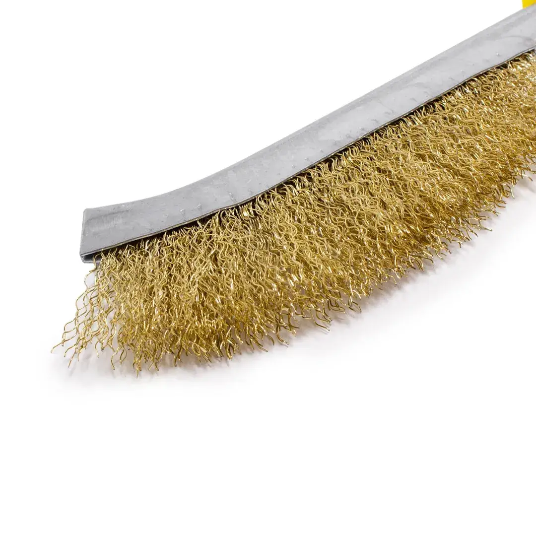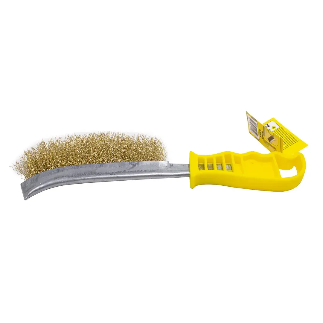Щетка ручная по металлу с пластиковой ручкой - это незаменимый инструмент для удаления грязи и ржавчины с любой металлической поверхности. Является эффективным, простым в применении и недорогим инструментом для качественной механической чистки поверхностей. Эффективно очищает металлические, деревянные и другие поверхности от загрязнений, ржавчины, старых лакокрасочных покрытий. Она состоит из металлической основы, на которую крепятся металлические щетинки, и пластиковой ручки для удобства использования. Задняя часть щетки выполнена из прочного стального держателя, а ручка из пластика обеспечивает эргономичность использования. Общая длина щетки 240 мм, рабочая часть 140 мм, длина щетины 53мм, материал щетины латунь. Подходит для использования в разных сферах, включая автомобильное производство, строительство, обработку металлических конструкций, чистку инструментов, а также зачистки поверхности перед сваркой и после. Железная щетка по металлу является незаменимым инструментом, который помогает быстро и эффективно очистить, и подготовить металл для дальнейшей обработки.