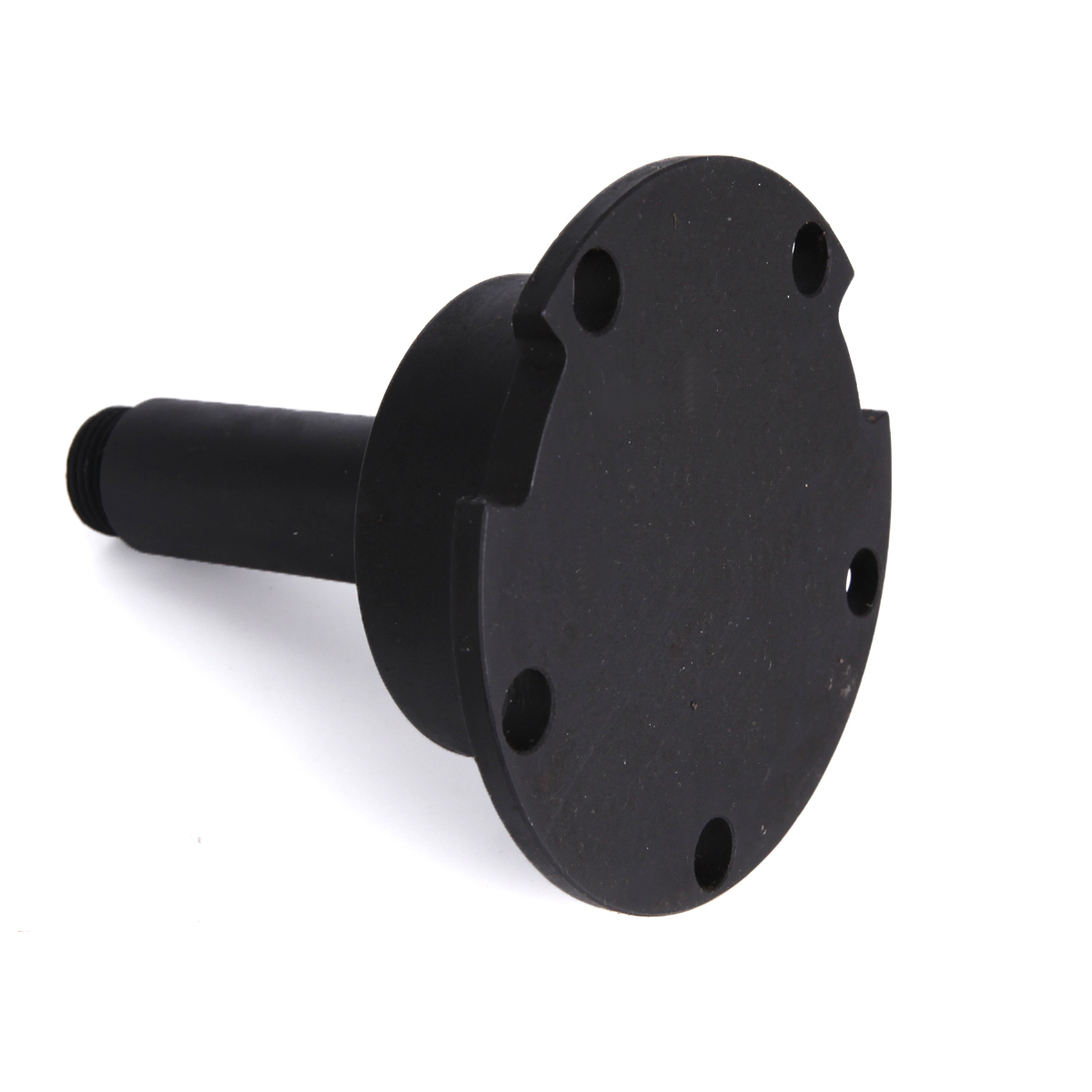 Данное приспособление используется в качестве упора при выпресовке корпуса ступичного подшипника из поворотного кулака. Перед использованием приспособления необходимо ослабить гайку крепления шпинделя. А также снять суппорт, колесо, ослабить болты крепления диска. После чего отвернуть болты крепления ступицы колеса и тормозного диска в сборе. Перед установкой приспособления необходимо снять шпиндель. Также обратить внимание на пазы фланца приспособления под датчик ABS. Используя болты крепления ступицы колеса, установить специальное приспособление и завернуть гайку крепления ступицы колеса в специальное приспособление. После чего демонтировать ступицу колеса и тормозной диск в сборе.