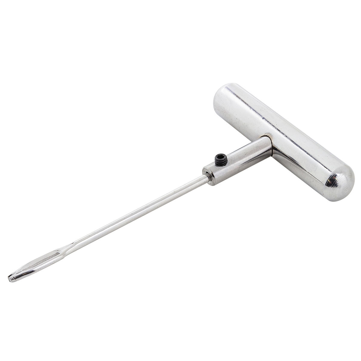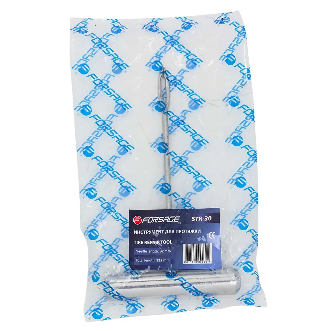 Инструмент для протяжки жгутов при ремонте шин имеет простую конструкцию и легок в использовании. Игла 82 мм. Ремонт шин жгутами осуществляется по схеме: в отверстие вставляется смазанное клеем шило для смазки прокола, в ушко установочного шила протягивается жгут для колеса, жгут смазывается клеем, вставляется установочное шило до упора, резким движением шило для установки достается.