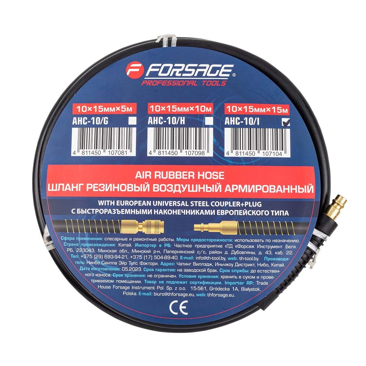 Шланг резиновый воздушный армированный с фитингами 10мм x 15мм x 15м Forsage F-AHC-10/I