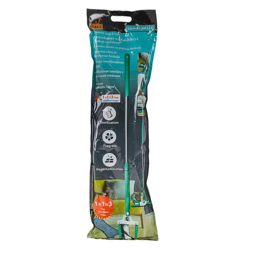 Швабра Х-образная с функцией отжима (бирюзовая,1300х370х150мм) ISMA ISMA-22(green)