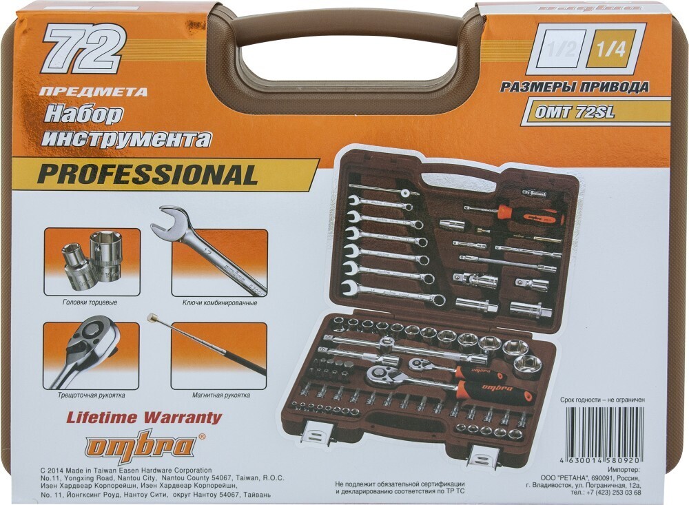 Содержание: 1/4"DR: Головки торцевые, 13 шт.: 4, 4.5, 5, 5.5, 6, 7, 8, 9, 10, 11, 12, 13, 14 мм; Торцевые насадки со вставками-битами, 14 предметов: Phillips: PH 1, PH 2; Шлиц: SL 4.5, SL 5.5; Hex: H3, H4, H5, H6; Torx: T8, T10, T15, T20, T25, T30; Трещоточная рукоятка; Вороток Т-образный; Отверточная рукоятка; Удлинители, 2 шт.: 50 и 100 мм; Удлинитель гибкий 130 мм; Шарнир карданный; 1/2"DR: Головки торцевые, 12 шт.: 10, 11, 12, 13, 14, 17, 19, 22, 24, 27, 30, 32 мм; Головки торцевые свечные, 2 шт.: 16 и 21 мм; Трещоточная рукоятка; Удлинители, 3 шт. 50, 125, 250 мм; Шарнир карданный; Адаптер для бит 5/16"; Вставки (биты) 5/16’’ (30мм), 10 шт.: Phillips: PH 3, PH 4; Hex: H8, H10, H12, H14 Torx: T40, T45, T50, T55 Адаптер трехсторонний для удлинителя; Ключи гаечные комбинированные, 6 шт.: 8, 10, 11, 12, 13, 14 мм; Магнитная рукоятка телескопическая; Пластиковый кейс.