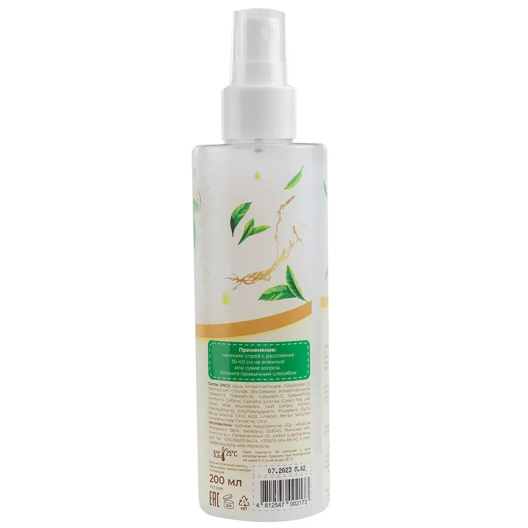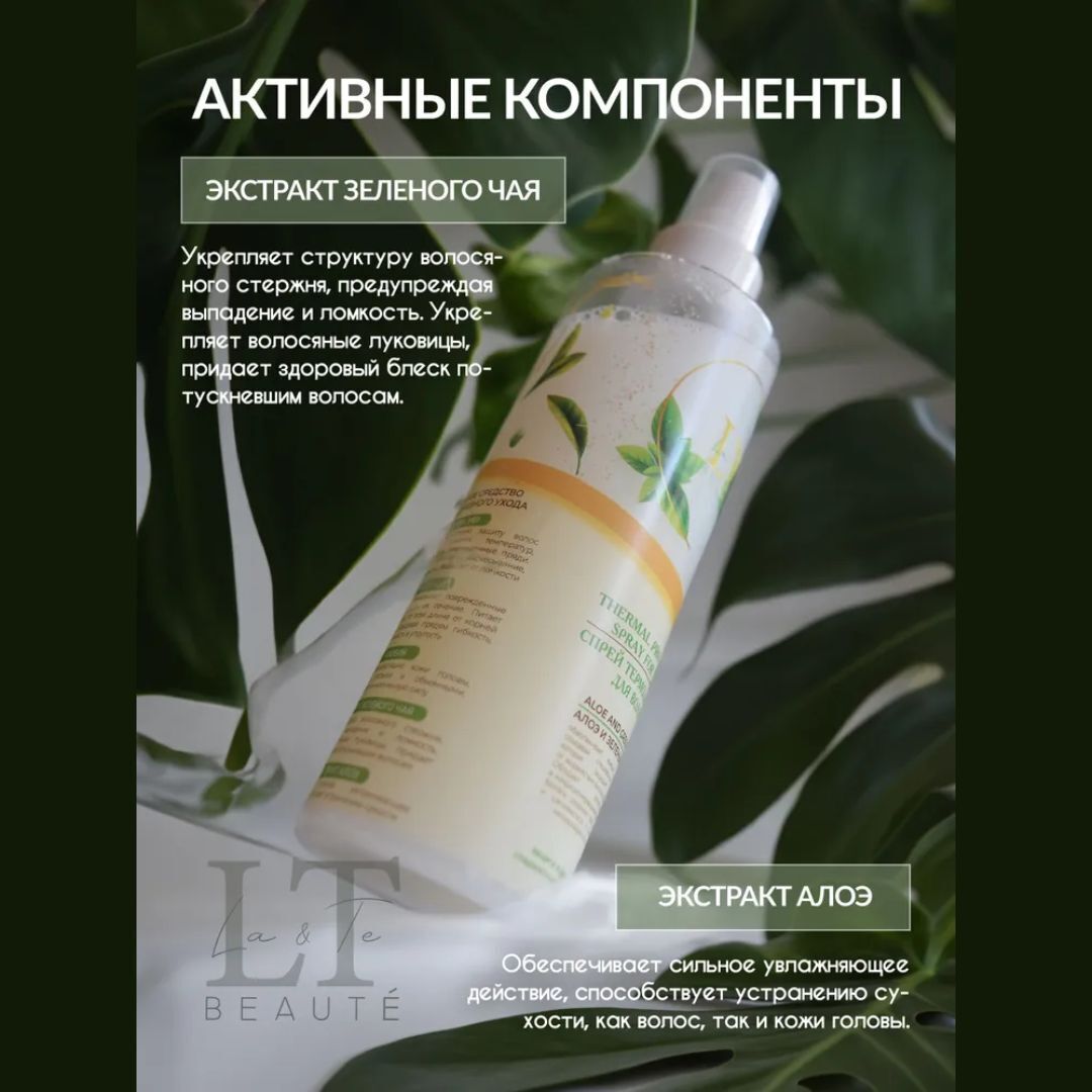 Специальная формула спрея, при распределении, обволакивает каждый волосок, создавай специальную пленку, которая защищает локоны от воздействия высоких температур. Обладает антистатическими и кондиционирующими свойствами, значительно облегчая процесс расчесывания и убирая чрезмерную пушистость. Даже при ежедневной укладке, волосы сохраняют свою гладкость и шелковистость и приобретают непревзойденное сияние. DOWSIL 969 обеспечивает эффективную защиту волос от действия высоким температур, восстанавливает даже очень поврежденные пряди. Кондиционирует, облегчая расчесывание как влажных, так и сухих волос, делая их послушными. Защищает от ломкости. ПАНТЕНОЛ укрепляет и восстанавливает поврежденные волосы, предотвращая их сечение. Питает и увлажняет волос по всей длине от корней и до кончиков, придавая прядям гибкость, эластичность и упругость. КОФЕИН оказывает сильное тонизирующее действие на кожу головы, улучшая ее микроциркуляцию и «пробуждая» неактивные волосяные луковицы, тем самым препятствуя обильному выпадению волос. Делает локоны густыми и объемными, возвращает им жизненную силу и наполняет энергией. ЭКСТРАКТ ЗЕЛЕНОГО ЧАЯ укрепляет структуру волосяного стержня, предупреждая выпадение и ломкость. Укрепляет волосяные луковицы, придает здоровый блеск потускневшим волосам. ЭКСТРАКТ АЛОЭ обеспечивает сильное увлажняющее действие, способствует устранению сухости, как волос, так и кожи головы.