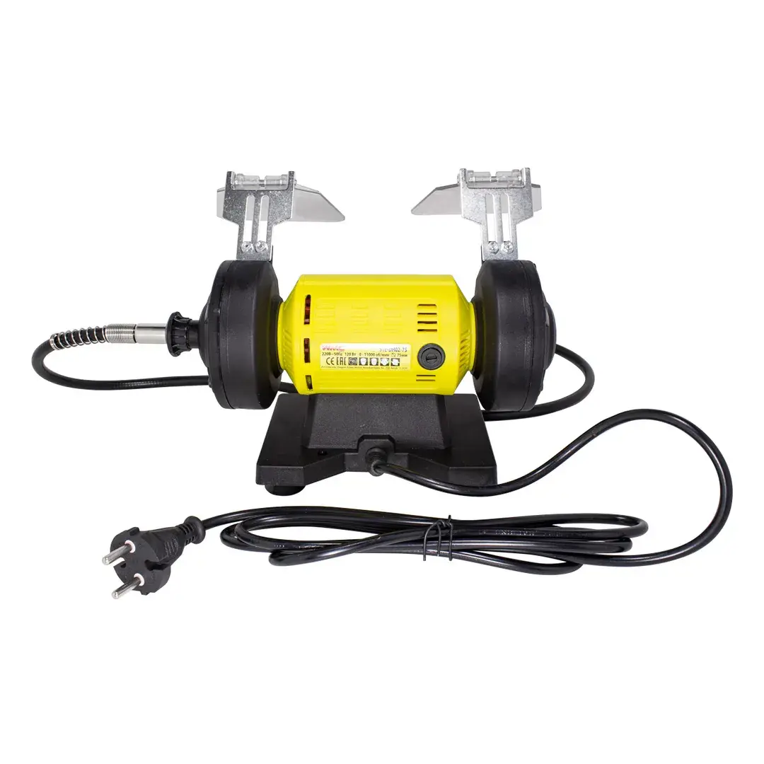 Станок точильно-шлиф-й.+гравер на гибком валу с набором аксессуаров 103пр(220В,50Гц120Вт,0-11000об/мин,круг Ø75хØ10х20мм,дл. вала 1м,цанги 2,2.4,3.2)