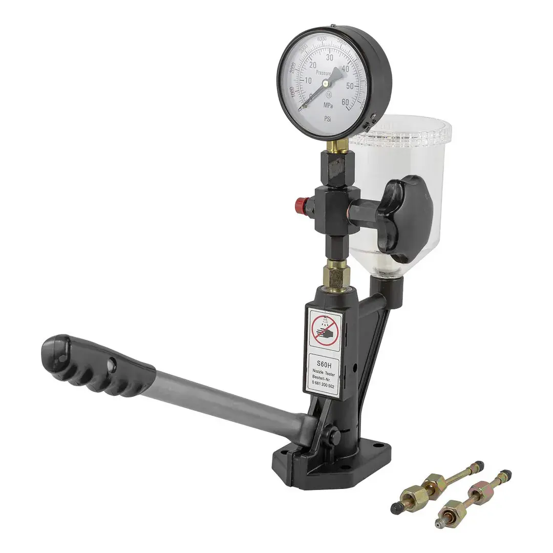 Стенд используется для регулировки и проверки давления, качества распыления и проверки герметичности форсунки. Большой манометр позволяет проводить измерения с точностью, требуемой рекомендациями и стандартами производителей топливной аппаратуры.Тестер давления форсунок подходит для измерений в дизельных автомобилях и грузовиках.Возможность крепления пробоотборника к рабочему столу. Применяется для проверки дизельных форсунок таких производителей топливных систем как: Bosch, Delphi, Zexel, Denso. В комплект входят резьбовые адаптеры-переходники (М12хМ12, М12хМ14). Технические параметры: Диапазон измерения давления: 0 - 600 бар, емкость бака пробоотборника: макс. 800 мл.