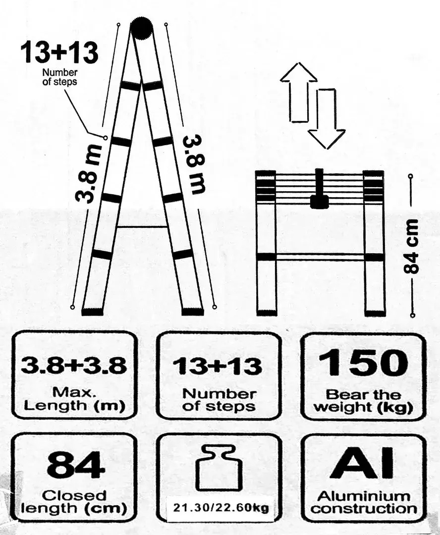 Стремянка телескопическая алюм. бытовая 3.8м (13+13 ступ.) Scheppach Sch-UP380-2