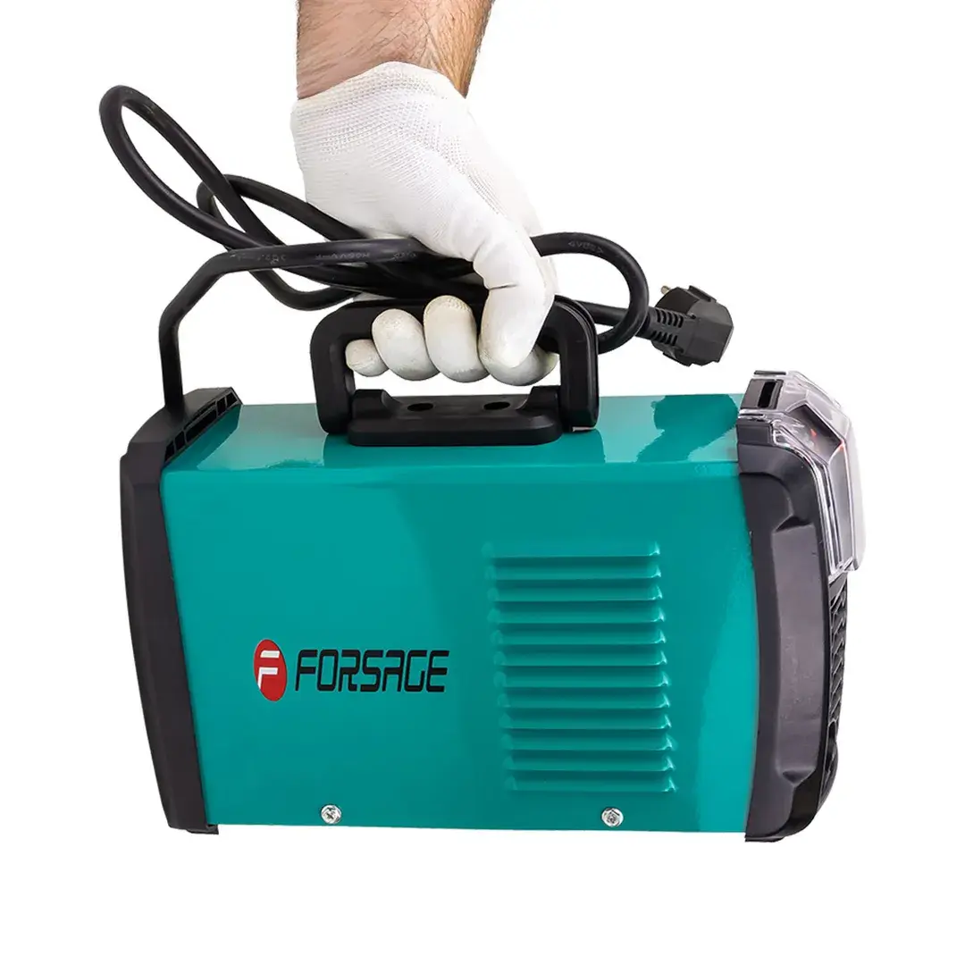 Регулируемый ток 20 - 200 А. Диаметр электрода 1.6 — 4 мм. Напряжение 220 В. ММА DC. С комплектом аксессуаров. Вес 8 кг.