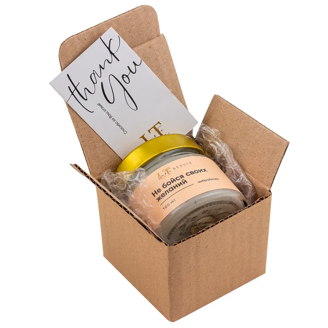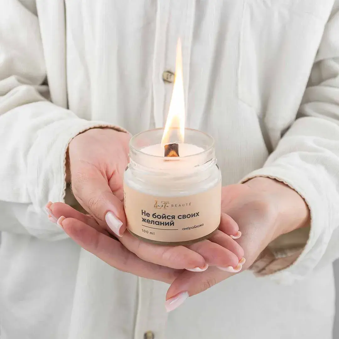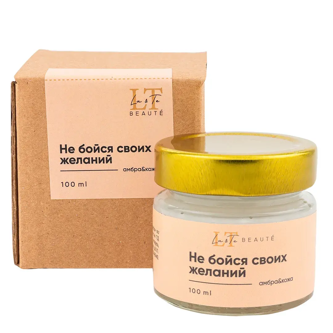 Свеча ароматизированная в стеклянной банке с крышкой 100 мл. Отдушка Амбра и кожа (Оливер). La and Te beaute LT-8625