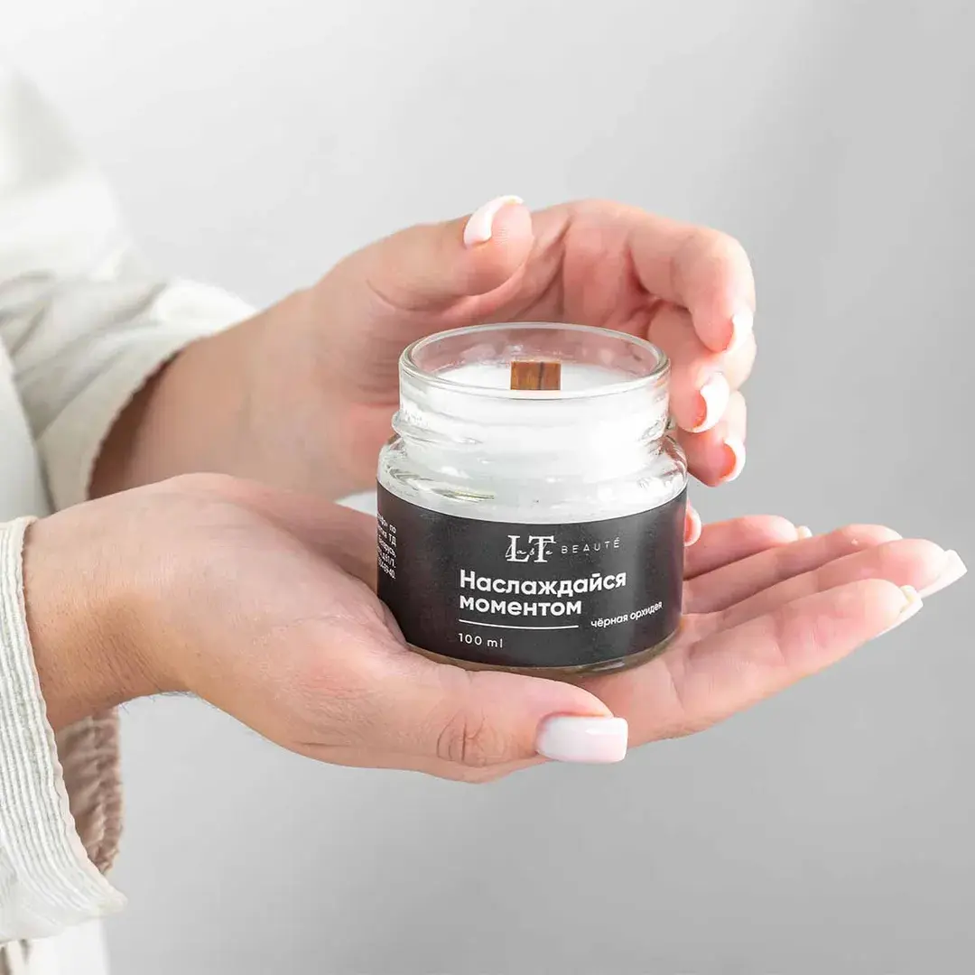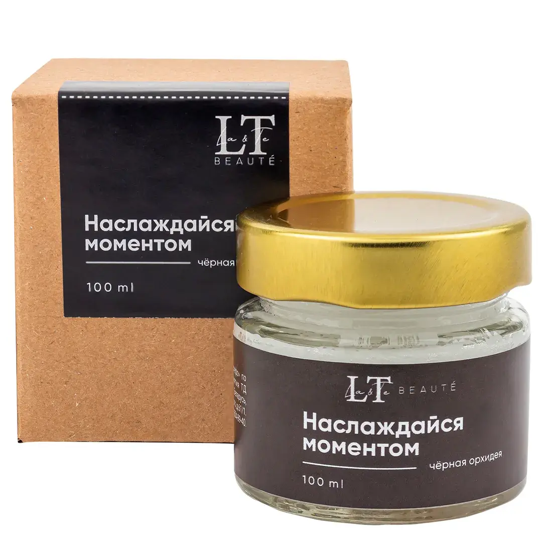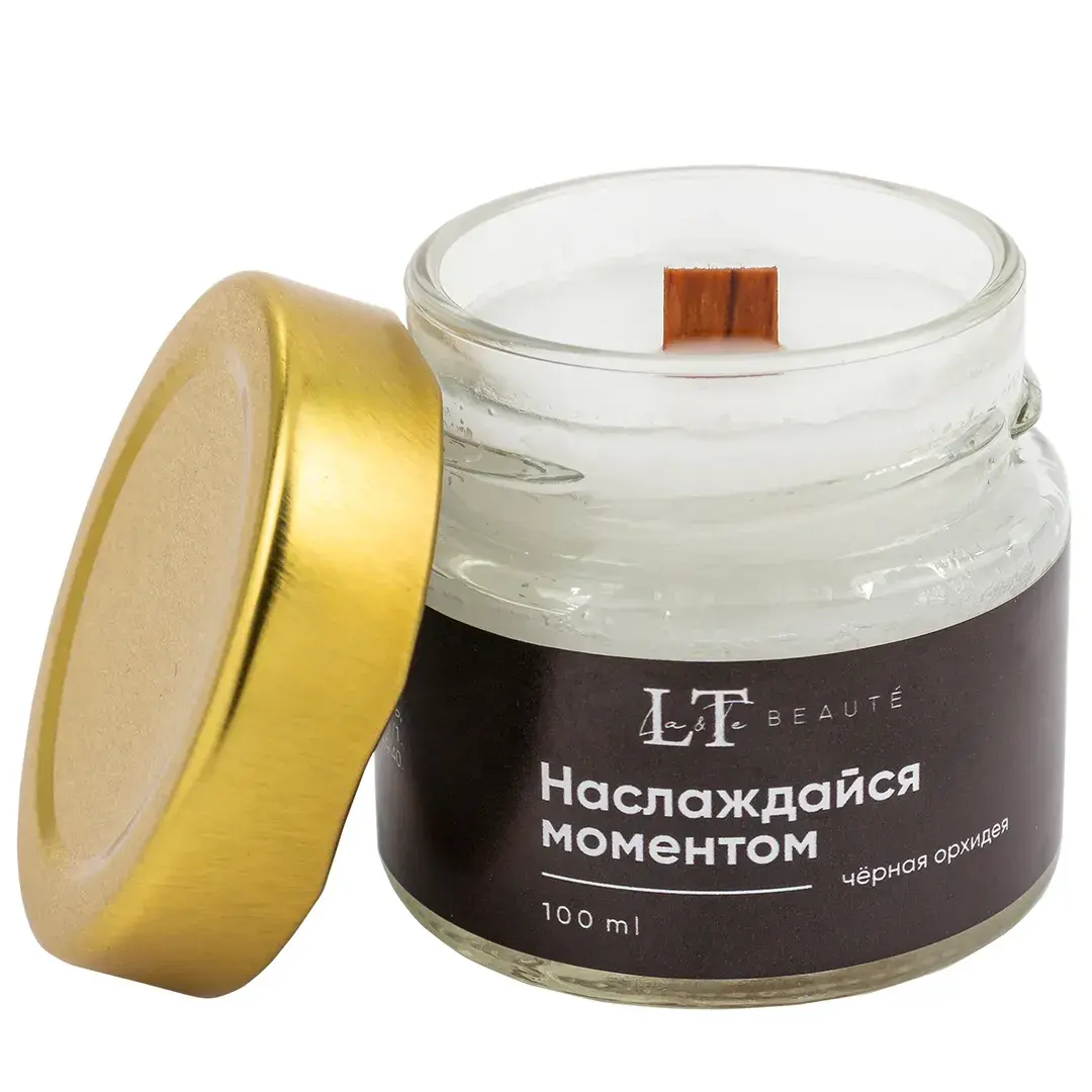 Свеча ароматизированная в стеклянной банке с крышкой 100 мл. Отдушка Черная Орхидея. La and Te beaute LT-8632