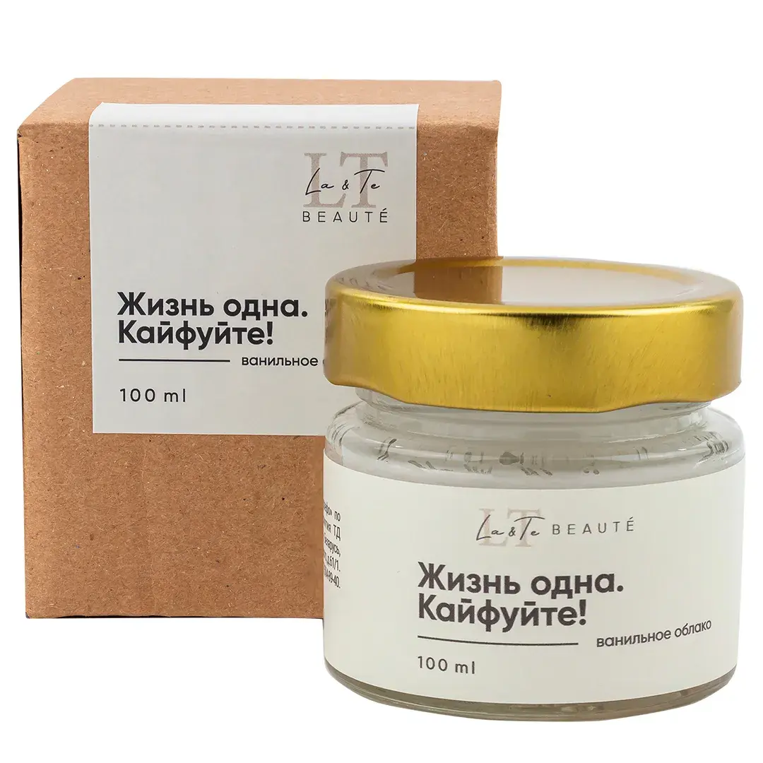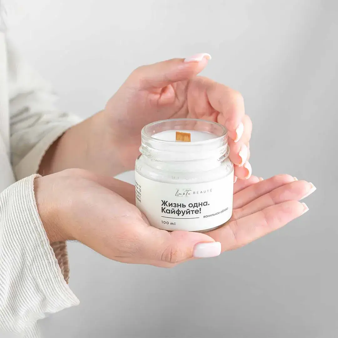 Свеча ароматизированная в стеклянной банке с крышкой 100 мл. Отдушка Ванилла. La and Te beaute LT-8656
