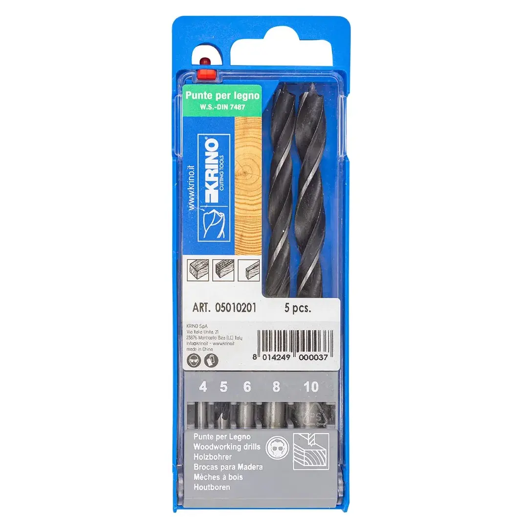 Сверла по дереву 4-5-6-8-10мм HRС 50 набор 5пр. Krino 5010201
