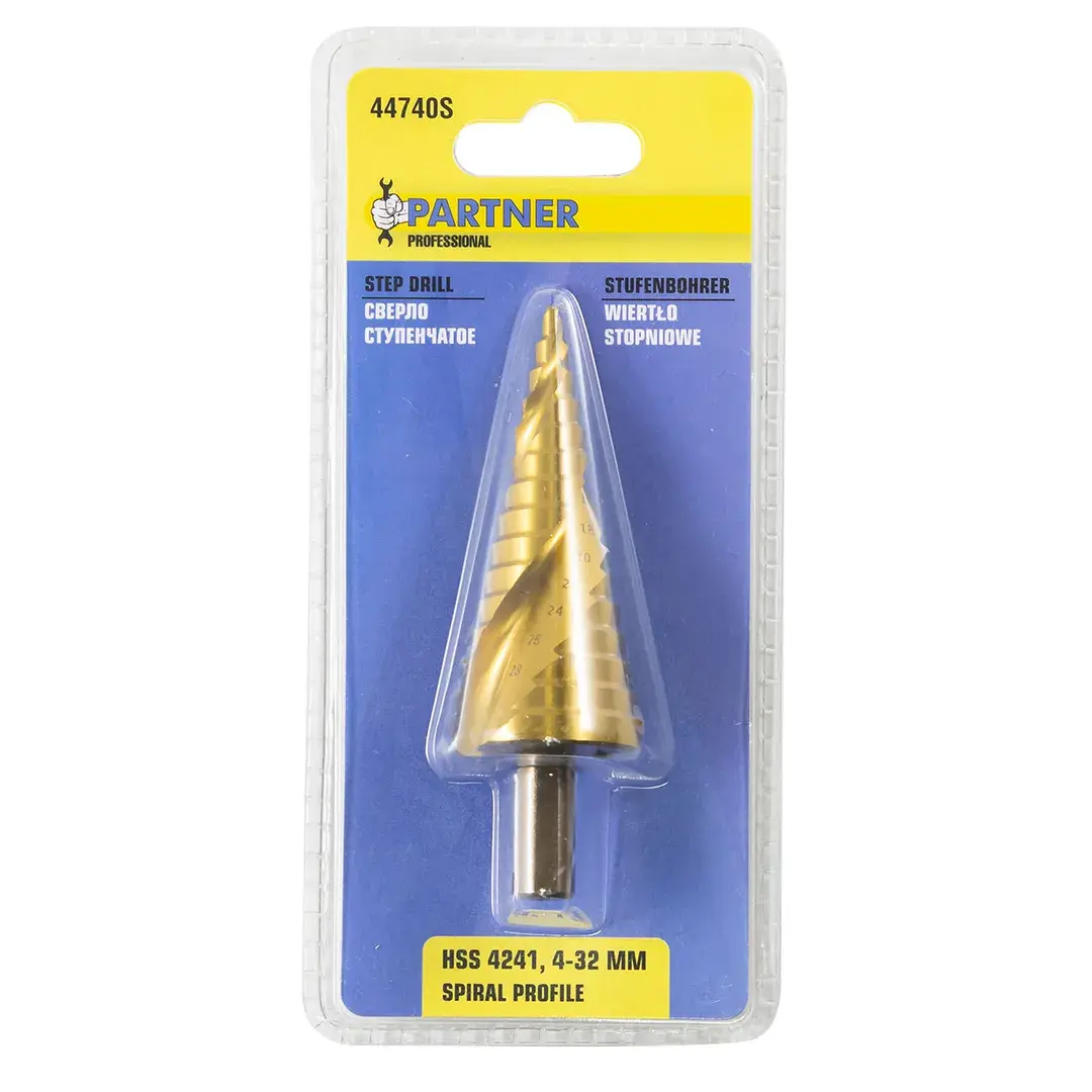 Сверло ступенчатое спиральное (4-32мм), в блистере (4-32мм) изготовлено из высококачественной инструментальной быстрорежущей стали HSS 4241. Обеспечивает плавность хода и высокую режущую способность, а также способствует лучшему отводу стружки из зоны сверления. Ступенчатые спиральные сверла предназначены для сверления отверстий разных диаметров в листовых и тонкостенных изделий из стали, цветных металлов, нержавеющей стали и пластика. Принцип работы конусного сверла прост: каждый следующий размер имеет плавный переход в виде ступеньки, что позволяет получать аккуратное отверстие нужного диаметра, не меняя при этом насадки. Преимущество ступенчатых сверл в том, что они позволяют сделать отверстия с более ровными кромками, в сравнении со спиральными и перовыми аналогами. Для отверстий различных диаметров применяется одно ступенчатое сверло. На каждой ступени есть маркировка фактического диаметра. Отверстие центрирует идеально. Конусное сверло используется для обработки очень тонкого листового металла и идеально подходит для обработки цветных металлов без деформации. Так же сверло ступенчатое применимо для работы с ПВХ, гипсокартоном, пластиком, древесными плитами. При больших объемах работ позволяет экономить время за счет отсутствия необходимости замены сверл различных диаметров. Сверла совместимы с разными моделями станков и дрелей (сверлильный станок, ручная дрель, аккумуляторная дрель). Именно благодаря своей универсальности ступенчатое сверло по металлу отличается повышенным интересом со стороны профессиональных мастеров. Одно сверло заменяет целый набор традиционных спиральных сверл. . Сверло поставляется в блистере. Длина сверла : 101мм. Размеры: 4-32мм(4-6-8-10-12-14-16-18-20-22-24-26-28-30-32 ).