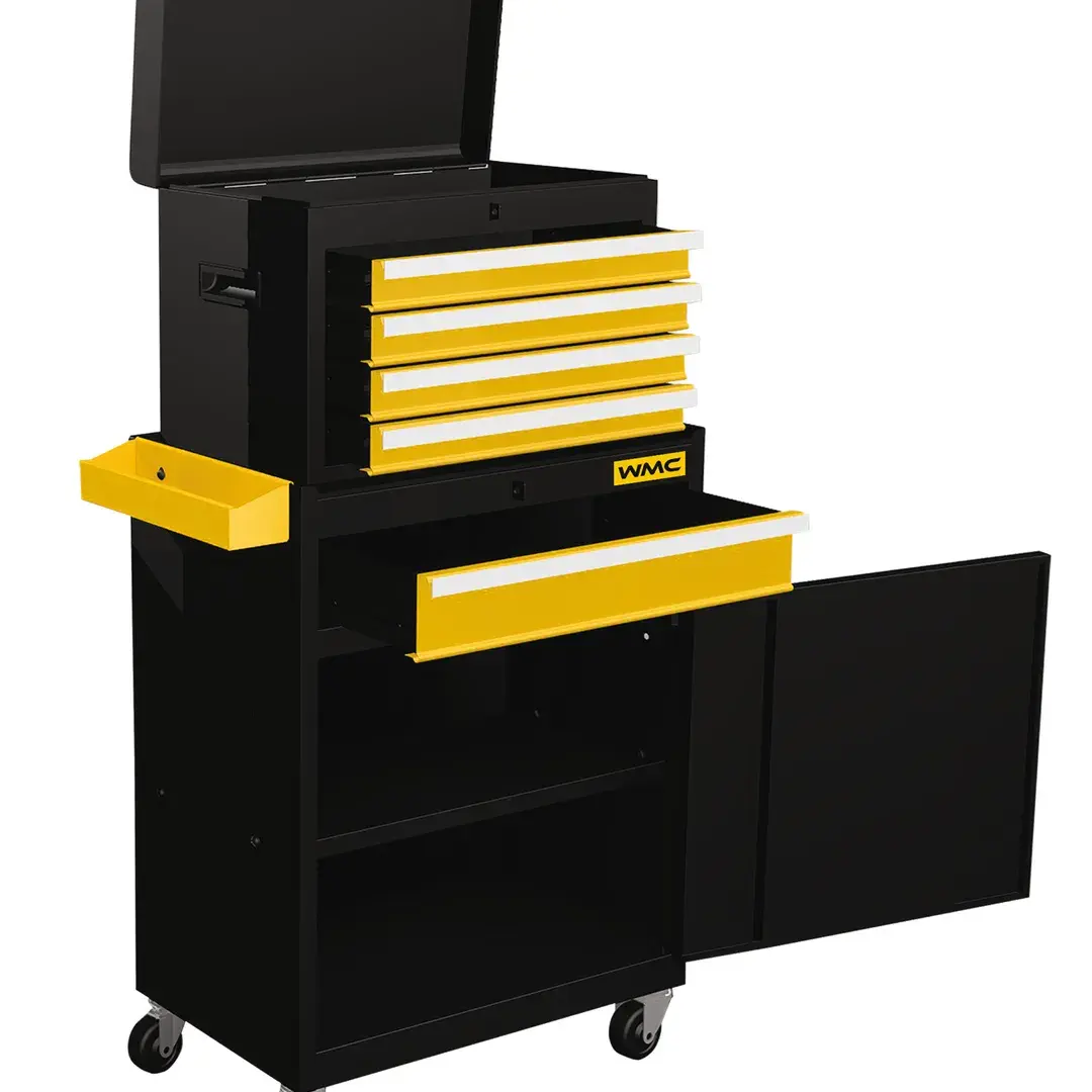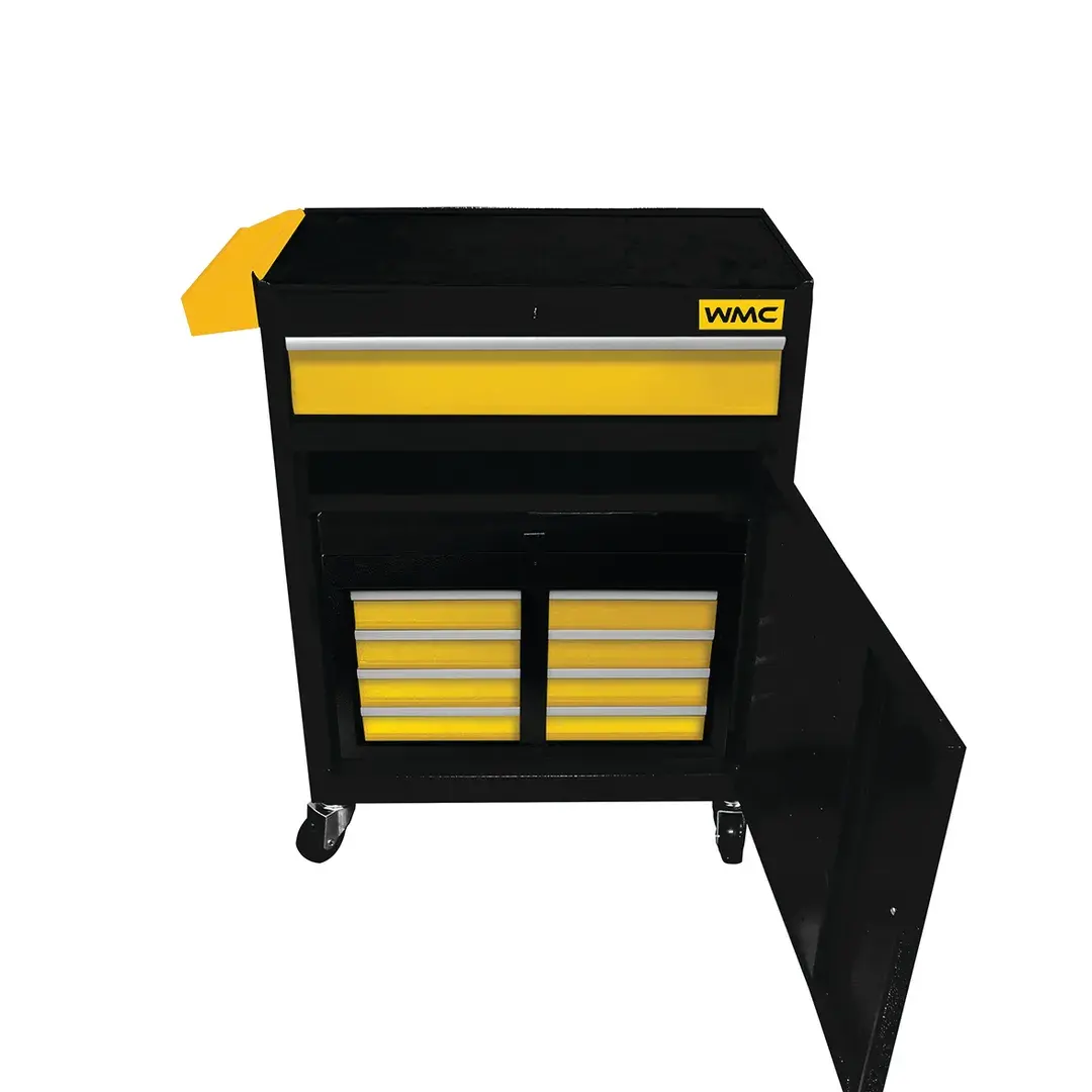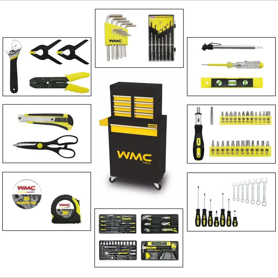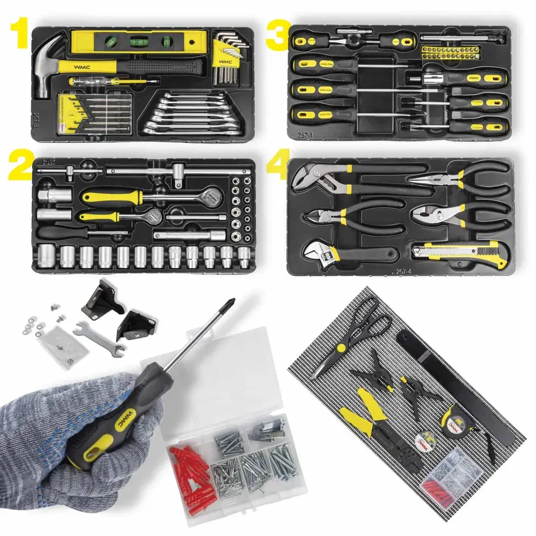 Набор инструментов на 1/4"и 1/2"из 257 предметов включает в себя практически всё необходимое в процессе ремонта и обслуживания автомобилей. Изготовленные из особо прочной хромованадиевой стали держатели и инструменты надежны и проверены практикой эксплуатации в режимах значительных механических нагрузок. Набор поставляется в инструментальной тележке. Верхняя часть тележки оборудована 4-мя выдвижными полками с 4-мя ложементами с пазами для ключей, что обеспечивает удобство извлечения и установки инструмента на его место. Съемная верхняя часть легко снимается и помещается внутри нижней части тележки. Нижняя часть тележки для инструмента имеет вместительный выдвижной ящик для хранения и две полки с дверцей, которая закрывается на замок, а также обородувана поворотными колесами на 360°, что позволяет без труда перемещать тележку в рамках рабочего пространства. Комплектация: 7 шт. - Ключи комбинированные: 8, 10, 12, 13, 14, 15, 17 мм 1 шт. - Пассатижи переставные 225 мм 1 шт. - Плоскогубцы 150 мм 1 шт. - Кусачки 150 мм 1 шт. - Утконосы 150 мм 1 шт. - Разводной ключ 150 мм 1 шт. - Клещи для снятия изоляции и обжима клемм 200 мм 1 шт. - Уровень 225 мм 1 шт. - Ножницы 210 мм 1 шт. - Нож 18 мм 1 шт. - Молоток-гвоздодер 230 г 2 шт. - Струбцины пружинные 75 мм 1 шт. - Рулетка 3 м 150 шт. - Набор крепежа 1 шт. - Лента изоляционная ПВХ 3 м 13 шт. - Головки 1/4": 4, 4.5, 5, 5.5 ,6, 6.5, 7, 8, 9, 10, 11, 12,13 мм 12 шт. - Головки 1/2": 8, 10, 11, 12, 13, 14, 15, 16, 17, 18, 19, 22 мм 2 шт. - Головки свечные 1/2": 16, 21 мм 1 шт. - Вороток Т-образный 1/2" 1 шт. - Вороток Т-образный 1/4" 1 шт. - Удлинитель 1/4"100 мм 1 шт. - Удлинитель 1/2"125 мм 1 шт. - Трещотка реверсивная 1/4" 1 шт. - Трещотка реверсивная 1/2" 6 шт. - Ювелирные отвертки: PH0, PH1, SL1.4, SL2.0, SL2.4, SL3.0 1 шт. - Рукоятка для головок 1/4 " 7 шт - Отвертки: PH: 2x38, 1x75, 2x100, 2x150 мм SL: 6x38, 5x75, 6x100 мм 1 шт. - Отвертка с храповым механизмом и реверсом 1 шт. - Индикаторная отвертка 100-500В 140 мм 11 шт. - Ключи 6-гранные Г-образные: 1.27, 1.5, 2, 2.5, 3, 3.5, 4, 4.5, 5, 5.5, 6 мм 24 шт. - Биты 25 мм: PH: 0, 1, 2, 3; PZ: 0, 1, 2, 3 ; SL: 3, 4, 5 мм; T: 9, 10, 15, 20, 25, 27, 30, 40; S: 0, 1, 2, 3; AD 1 шт. - Рукоятка с магнитным битодержателем 58 мм 1 шт. - Индикатор давления Размеры нижней частии тележки : 720х530х280мм; Размеры верхнего ящика : 450х330х240мм.