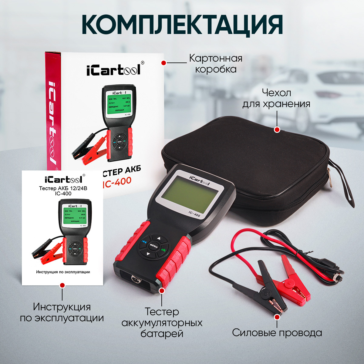 Тестер аккумуляторных батарей (АКБ) 12/24V iCartool IC-400