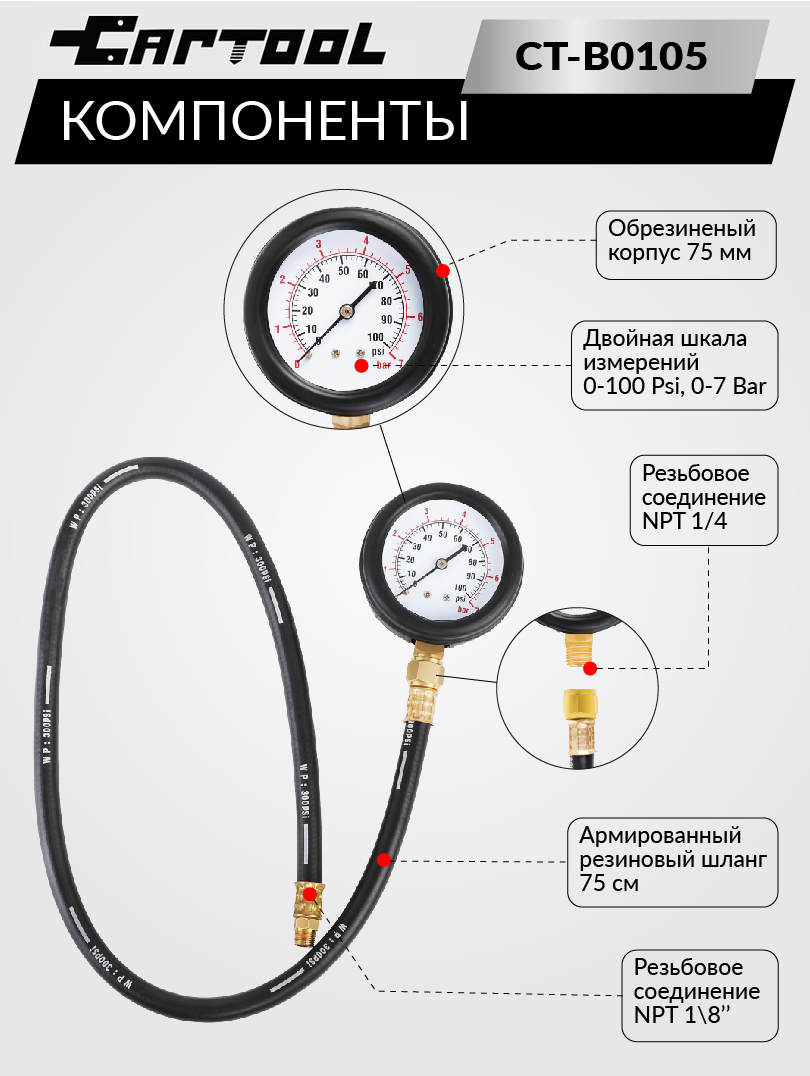 Тестер давления масла в двигателе в кейсе Car-Tool CT-B0105