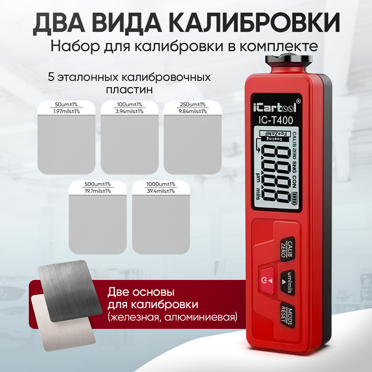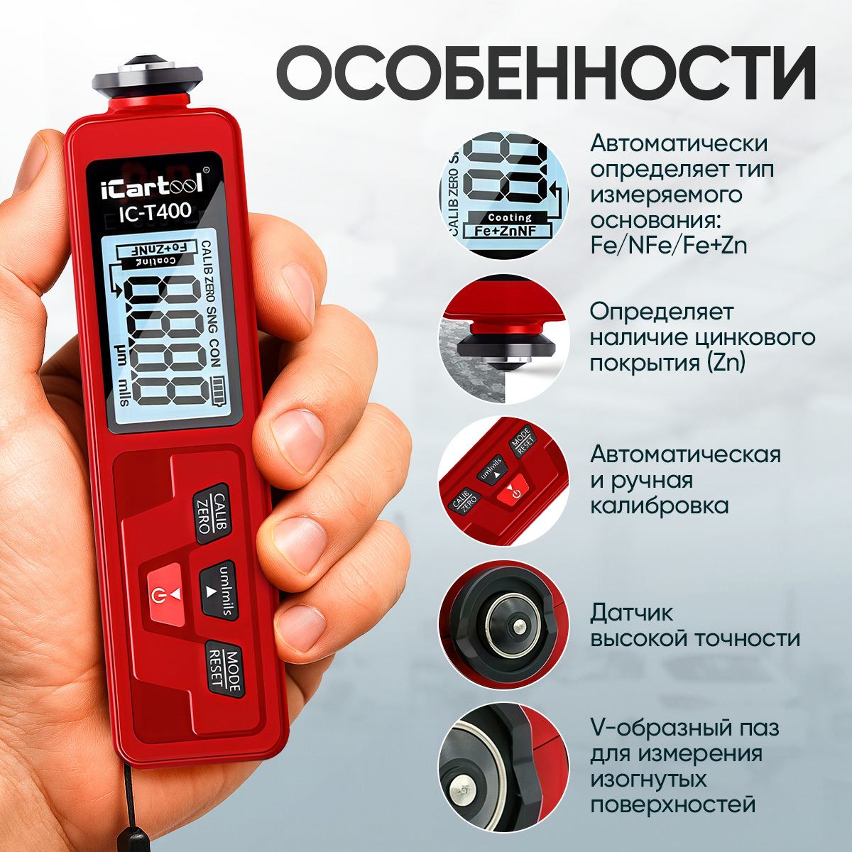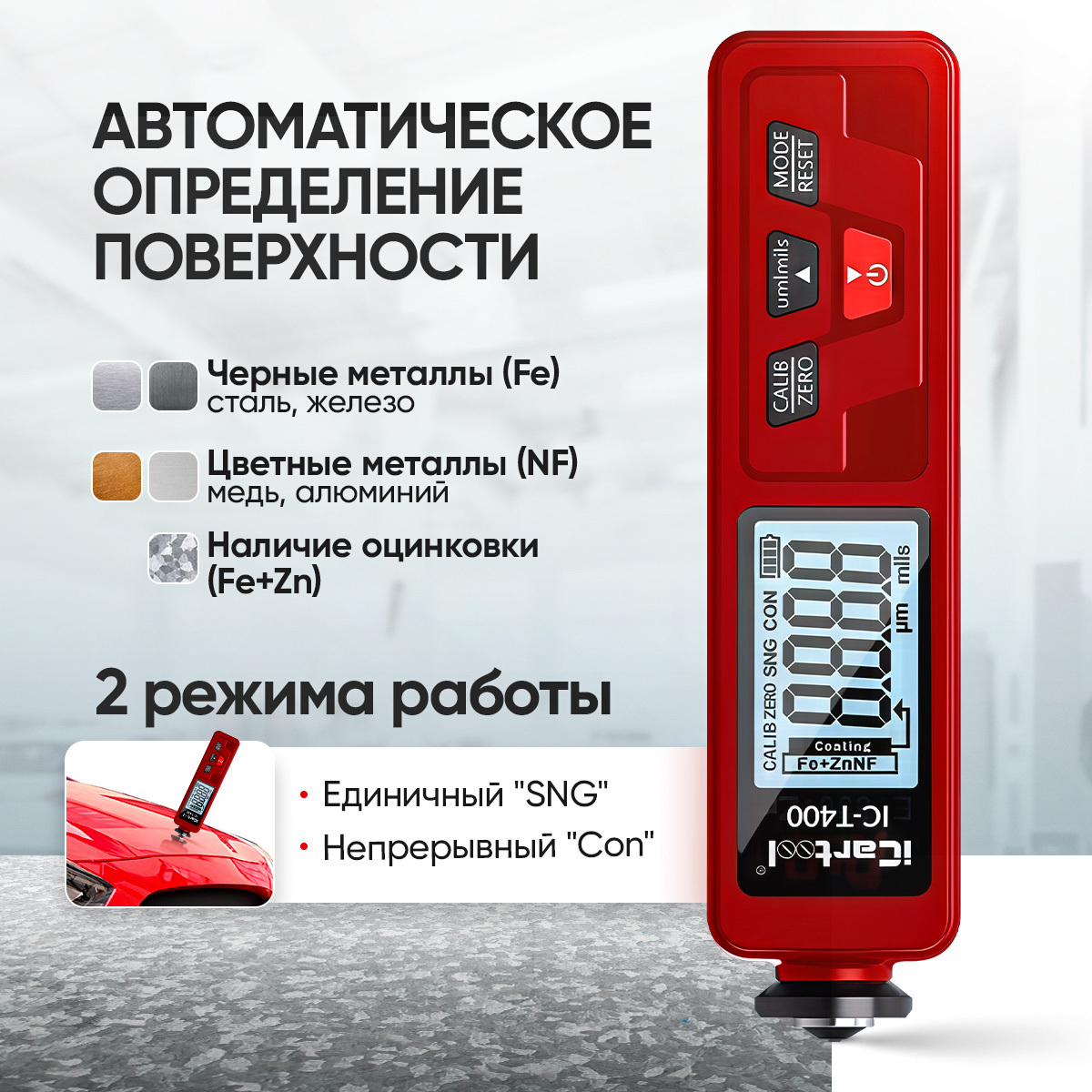 Толщиномер лакокрасочных покрытий Fe+Zn iCartool IC-T400