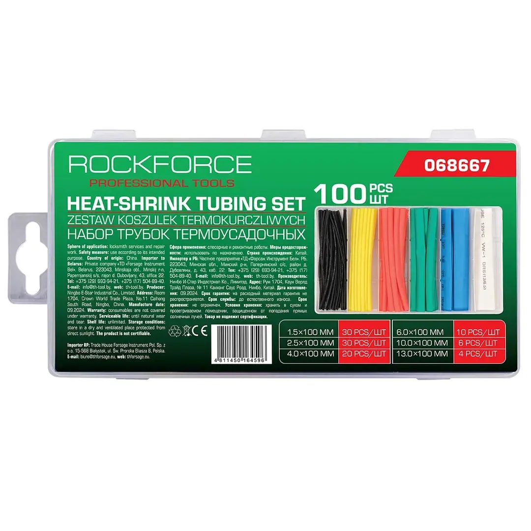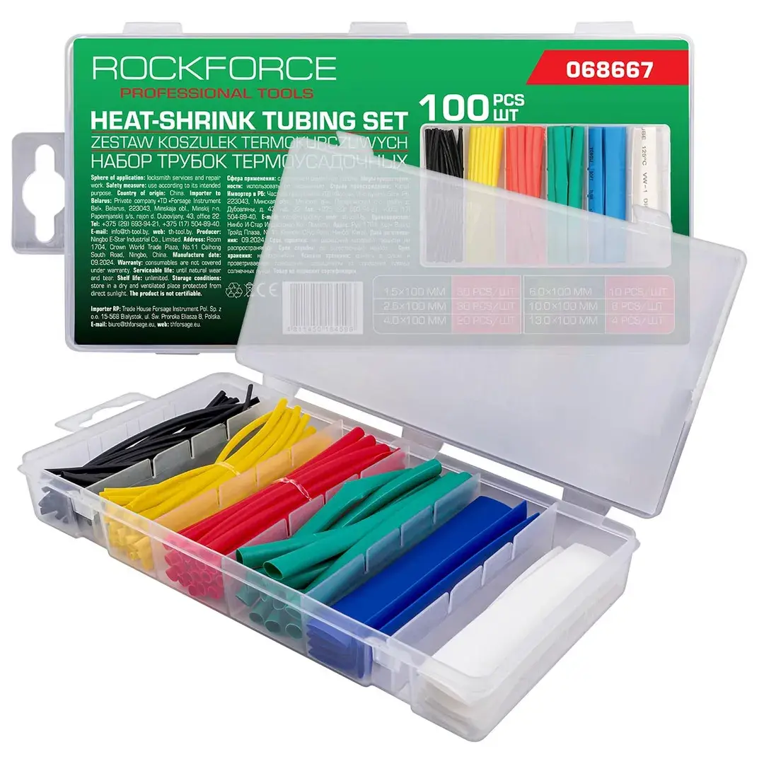 Трубки термоусадочные, набор 100пр. RockFORCE RF-068667