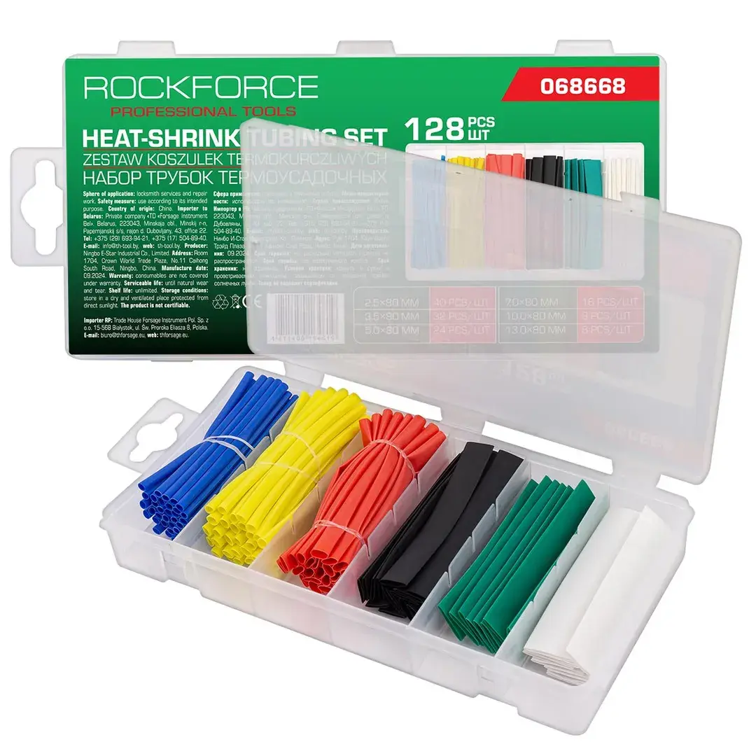 Трубки термоусадочные, набор 128пр. RockFORCE RF-068668