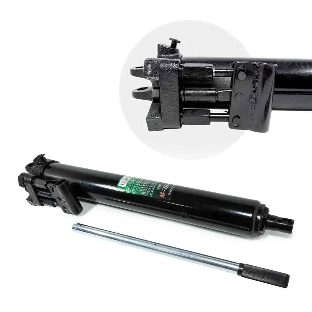 Цилиндр гидравлический удлиненный с двухштоковым насосом 5тонн. Используется для промышленного или автогаражного подъемного оборудования с гидроприводом. За счет работы гидравлического цилиндра создается большое усилие, способное приводить в действие тяжелые механизмы, приподнимать грузы и создавать тяговое движение. Устройство может работать в вертикальном, горизонтальном и любом другом положении относительно уровня пола, приводить в движение прессы, создавать контролируемые усилия, необходимые для вытягивания рам автомобилей, и применяться для поднятия тяжестей. Цилиндр способен развивать полезное усилие до 5 тонн. Общая длина корпуса 660 мм, ход штока – 500 мм. Гидравлический цилиндр особенно удобен для выполнения различных технологических операций на предприятиях автосервиса. Является востребованным элементом оборудования не только профессиональных автосервисов, но и личных гаражных боксов и механических мастерских универсального профиля.