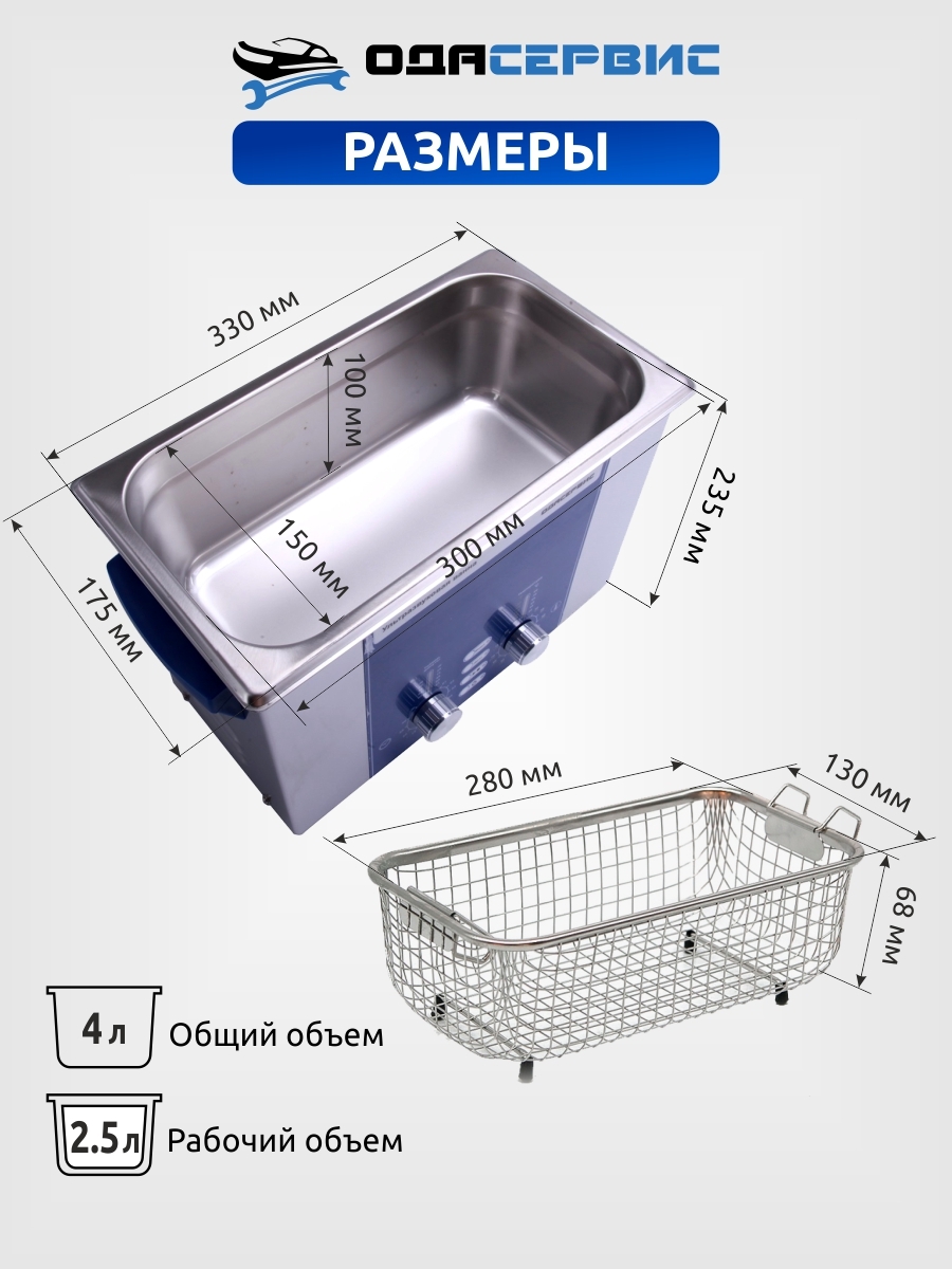 Ультразвуковая ванна с аналоговым управлением, подогревом, дегазацией и модуляцией 4 л ОДА Сервис ODA-DS40