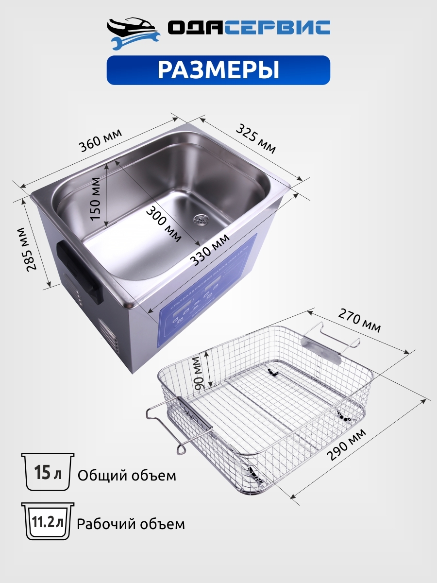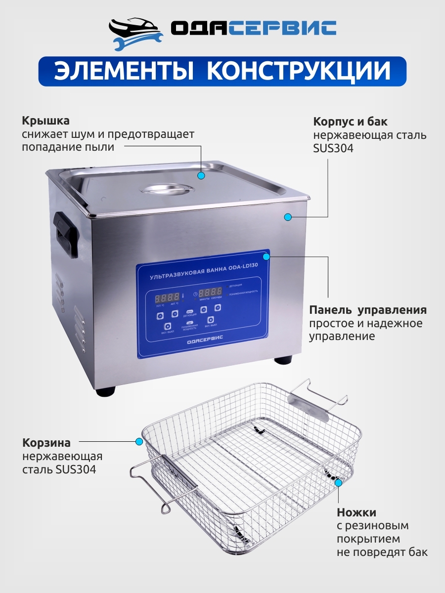 Ультразвуковая ванна с цифровым управлением, функциями подогрева и дегазации, 15 л ОДА Сервис ODA-LD130