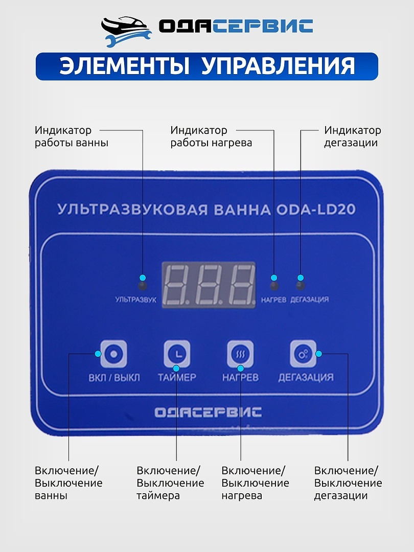 Ультразвуковая ванна с цифровым управлением, функциями подогрева и дегазации, 2л ОДА Сервис ODA-LD20