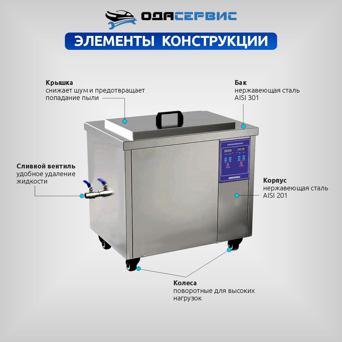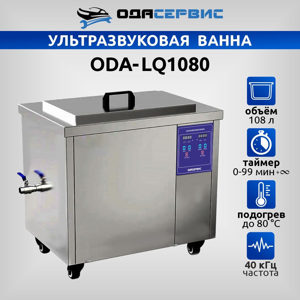 Ультразвуковая ванна с цифровым управлением и подогревом, 108 л ОДА Сервис ODA-LQ1080