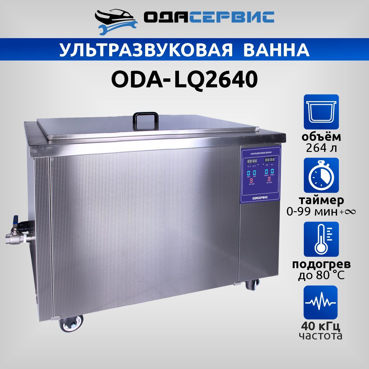 Ультразвуковая ванна с цифровым управлением и подогревом, 264 л ОДА Сервис ODA-LQ2640