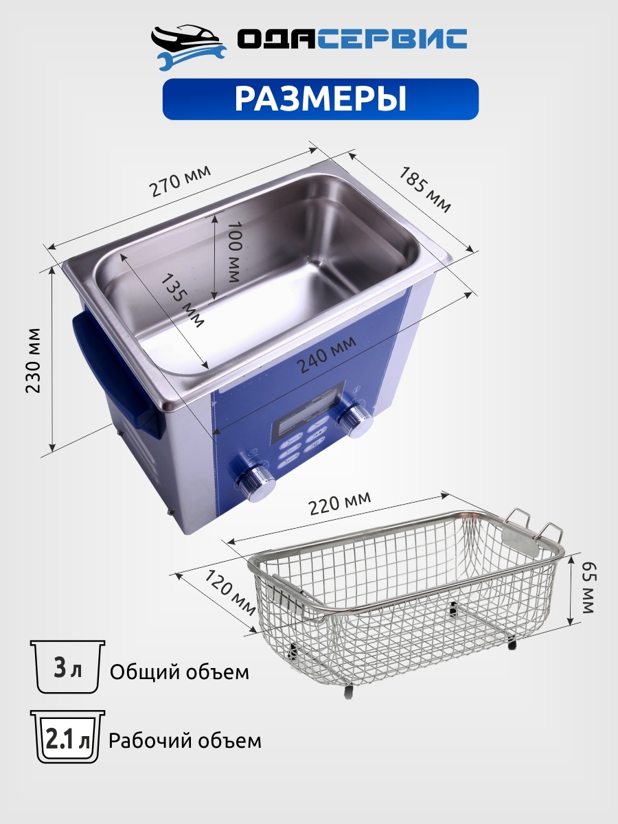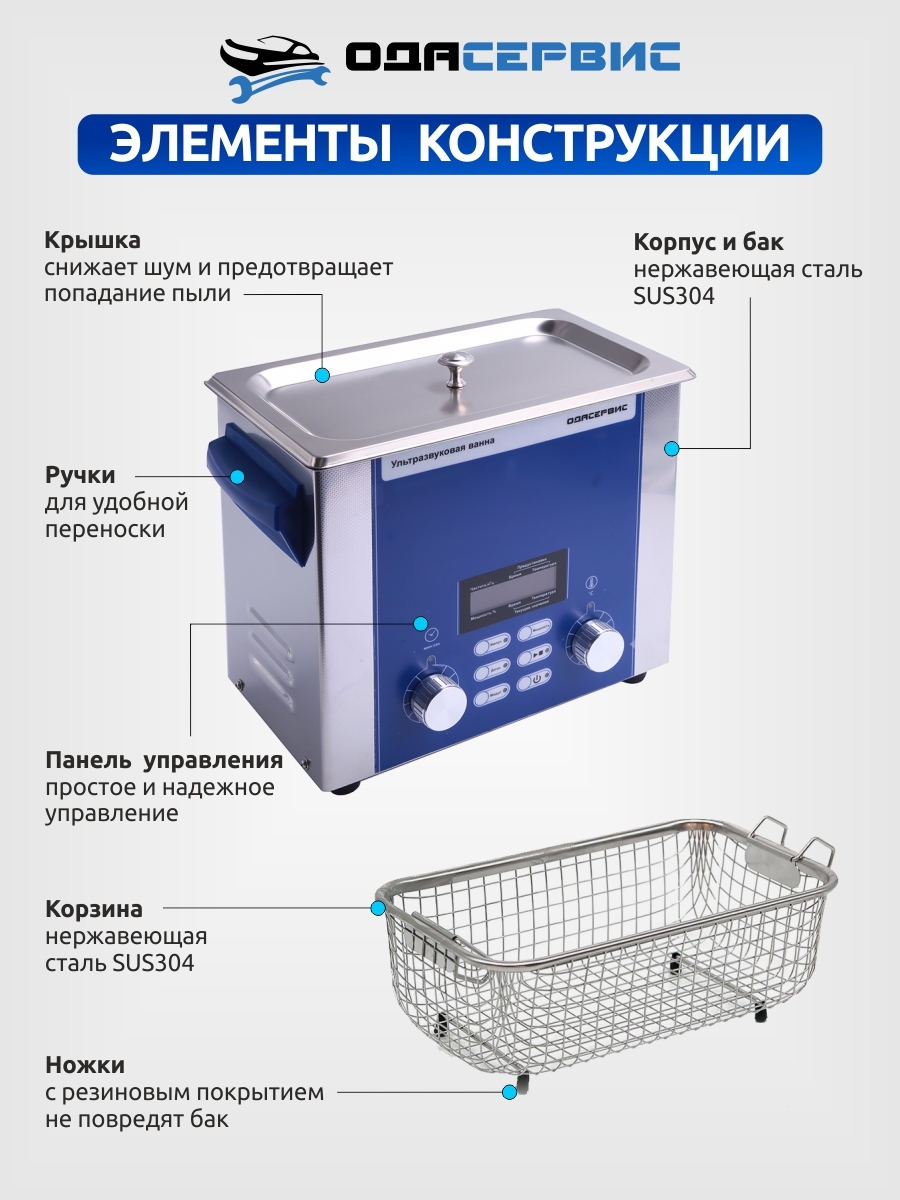 Ультразвуковая ванна с цифровым управлением, подогревом, дегазацией и импульсной очисткой 3 л ОДА Сервис ODA-P30