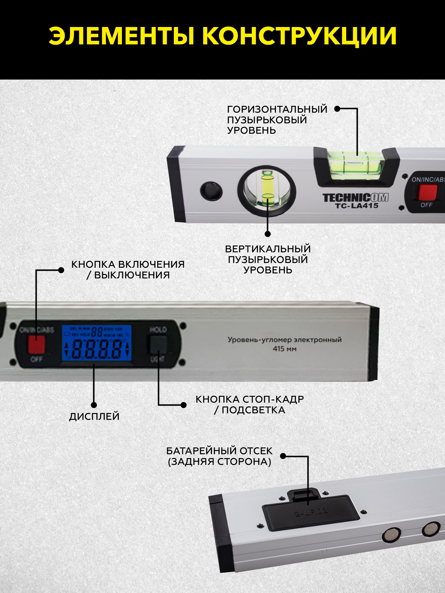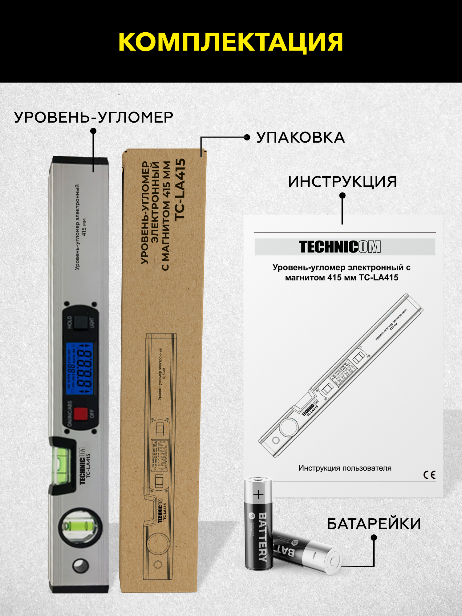 Уровень-угломер электронный с магнитом 415 мм TECHNICOM TC-LA415