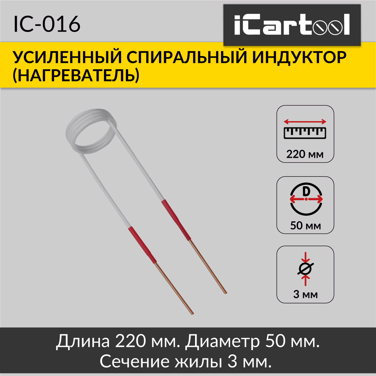 Усиленный спиральный индуктор (нагреватель) длина 220 мм. диаметр 50 мм. толщина жилы 3 мм. iCartool IC-016