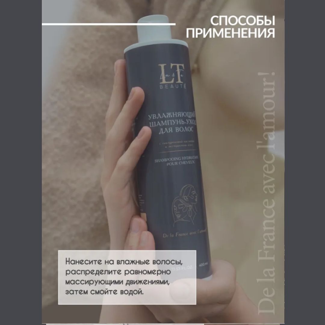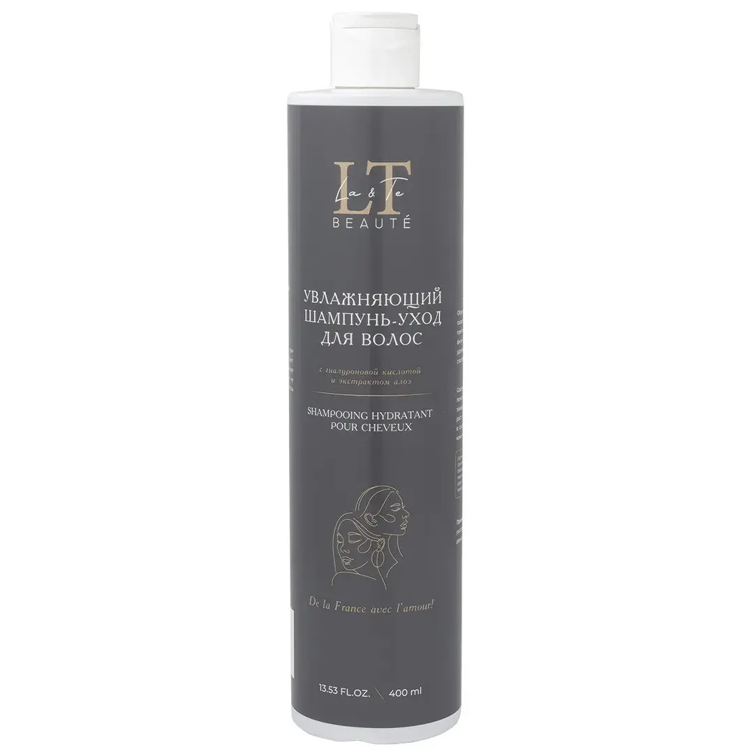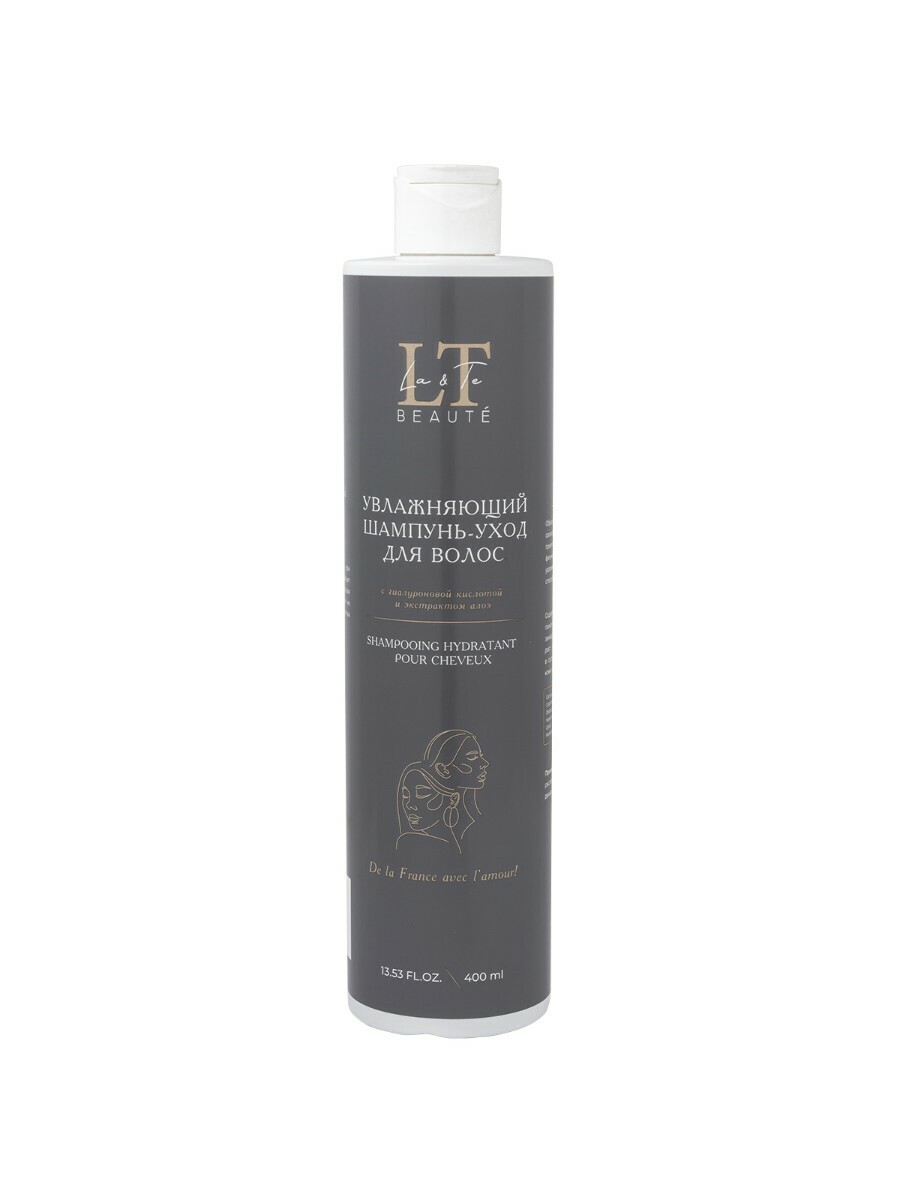 La & Te beauté - это качественная уходовая косметика, которая подходит для всей семьи. Увлажняющий шампунь-уход для волос с гиалуроновой кислотой и экстрактом алоэ насыщает необходимой влагой, витаминами и минералами. Увлажняющий шампунь-уход при соприкосновении с волосами образует специальную воздушную пенку, которая глубоко очищает волосы, при этом не пересушивая их и не вызывая чувства «скрипучести». Гиалуронат натрия образует на поверхности волоса своеобразный защитный слой, не просто препятствуя испарению влаги за счет своих физических свойств, но и помогая удерживать ее внутри, благодаря своей способности связывать воду. Экстракт алоэ содержит в себе полисахариды, которые помогают в значительной степени замедлить выпадение волос и ускорить их рост. А витамины и минералы, входящие в состав алоэ, улучшают общее состояние кожи головы, уменьшая количество перхоти.