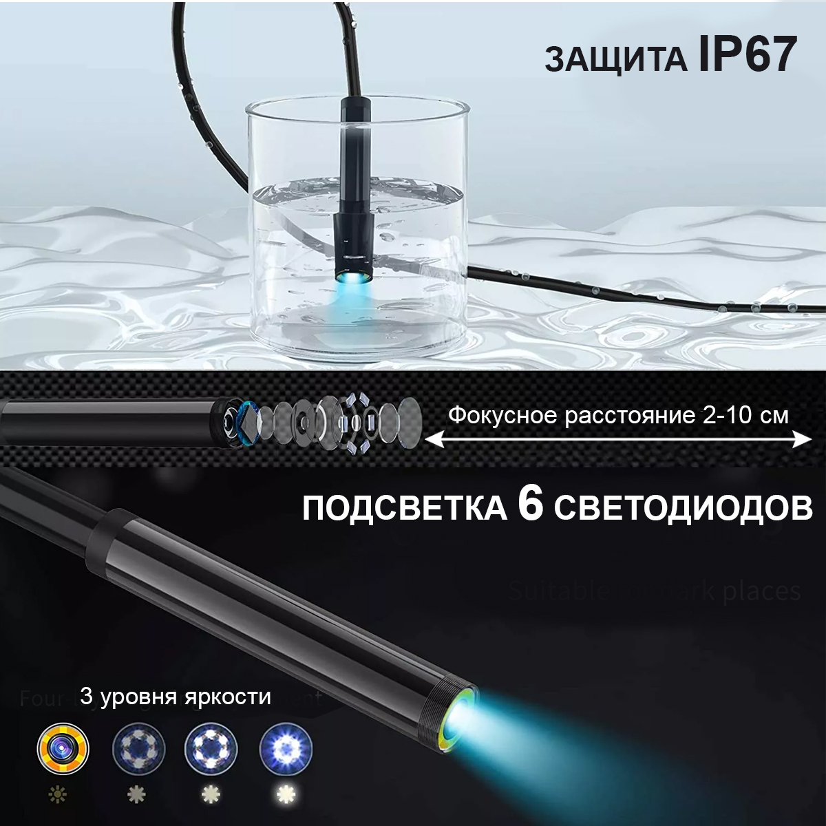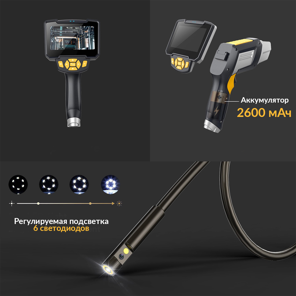Видеоэндоскоп промышленный, 4.3", 1Мп, 2 камеры, 1280х720, 1м, 8 мм сменный зонд iCartool IC-V112A_1
