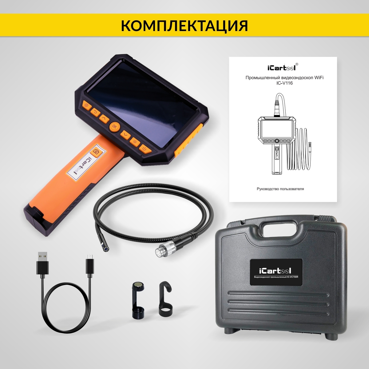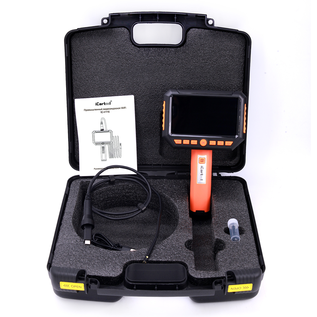 Видеоэндоскоп промышленный, экран 5", 2 камеры, 2Мп, 1920х1080, 1м, 5.5 мм сменный зонд iCartool IC-V116B