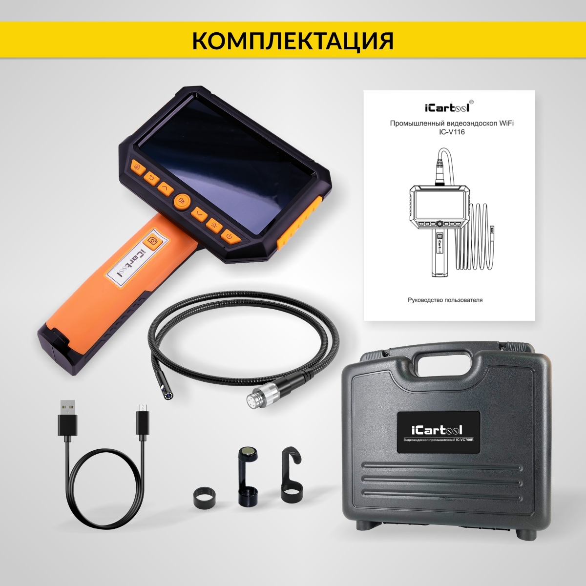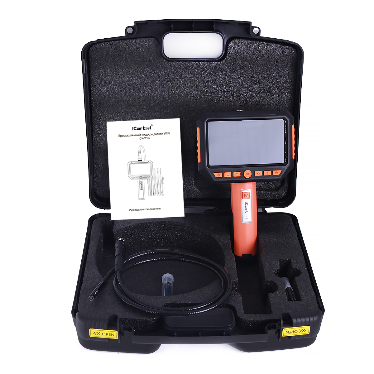 Видеоэндоскоп промышленный, экран 5", 3 камеры, 2Мп, 1920х1080, 1м, 8 мм сменный зонд iCartool IC-V116A