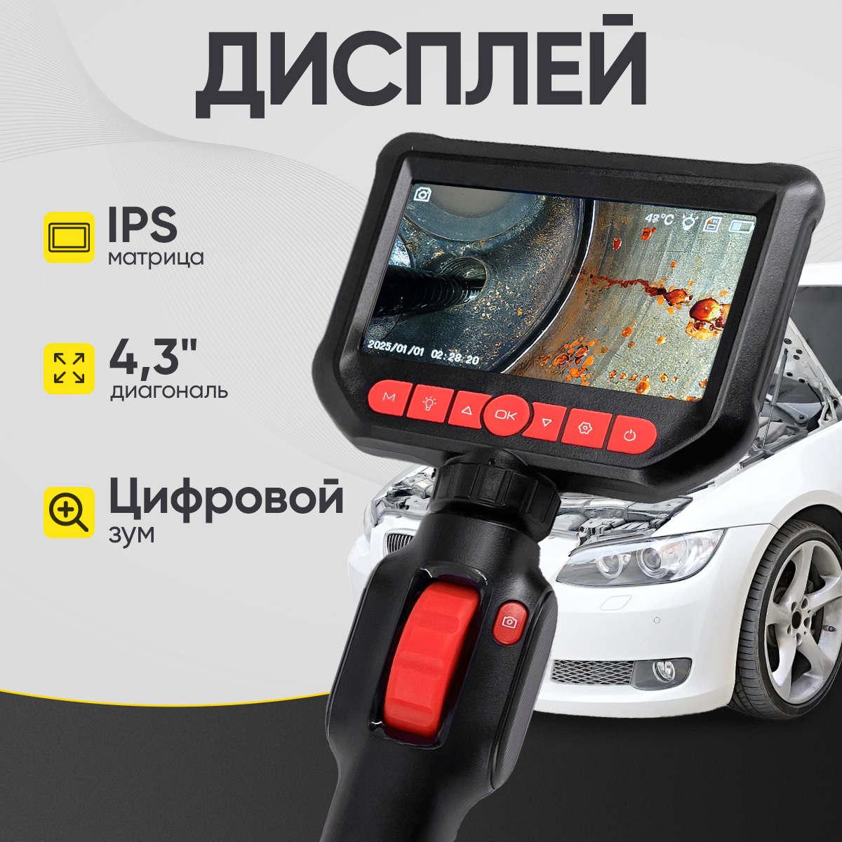 Видеоэндоскоп управляемый, экран 4.3", 2Мп, 1920х1080, 1.5м, зонд 6мм, 360° iCartool IC-VC156