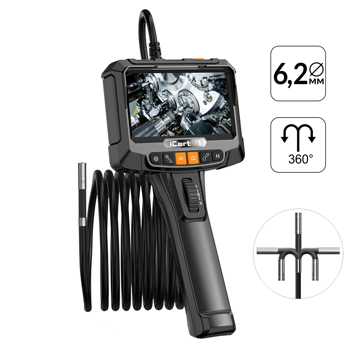 Видеоэндоскоп управляемый, экран 5", 2Мп, 1920x1080, 1м, 6.2мм, 360° iCartool IC-VC8052W