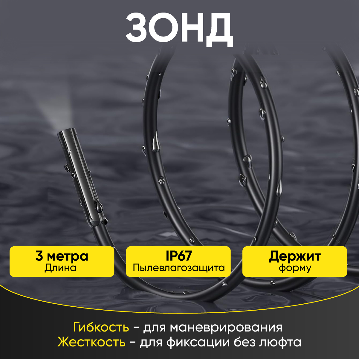 Видеоэндоскоп USB, 2Мп, 1920x1080, 3м, 5.5 мм зонд iCartool IC-V553