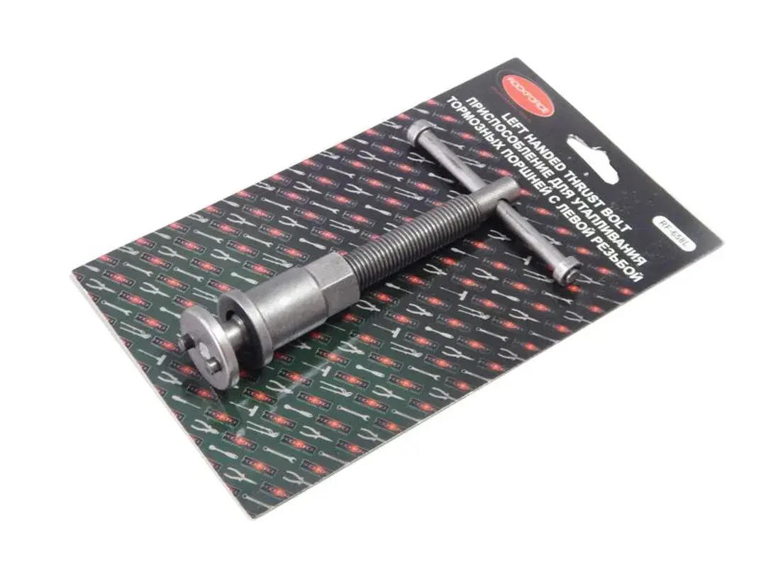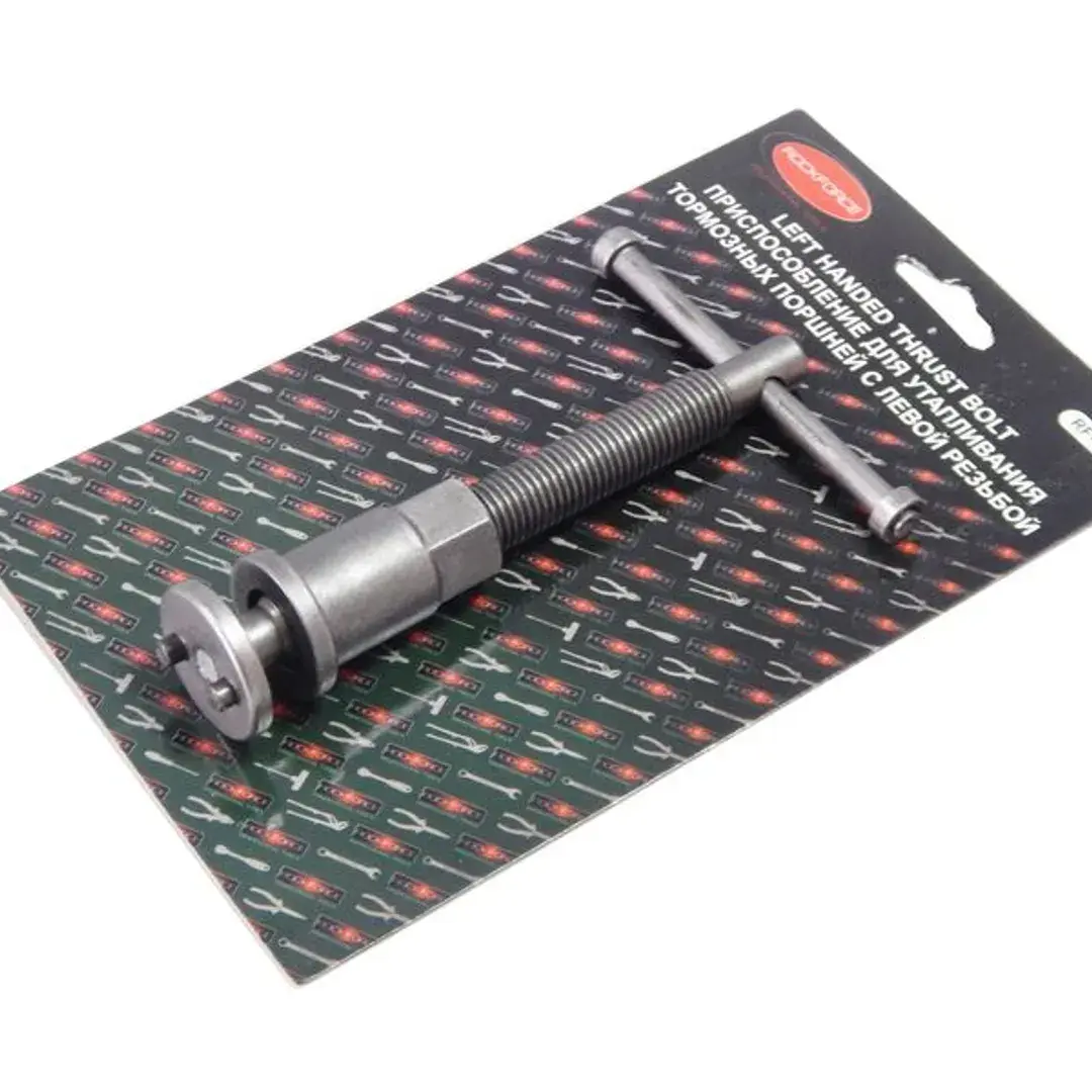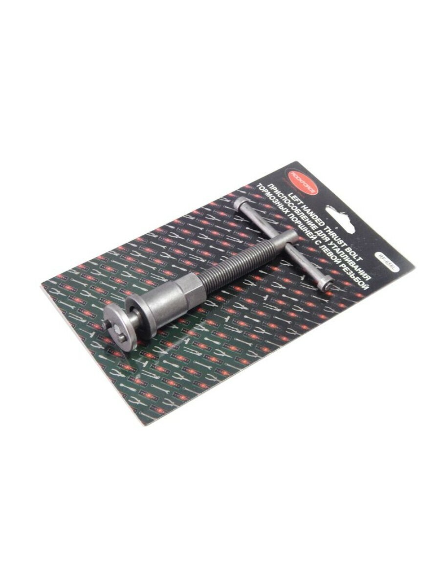 Винт с левой резьбой для утапливания тормозных поршней поставляется в блистере. Используется как самостоятельное приспособление или как запасная часть для восстановления работоспособности и расширения применяемости наборов для сведения тормозных цилиндров. Инструмент предназначен для корректного утапливания тормозных цилиндров с дисковой системой тормозов. Используется в качестве запасного или основного инструмента при сведении тормозных цилиндров. Приспособление поставляется в блистерной упаковке. Основные особенности инструмента: имеет левую резьбу и вращается по часовой стрелке, произведен из прочного металла, не подверженного износу и деформации, оптимален для частного пользования в гараже или в профессиональных автомастерских.