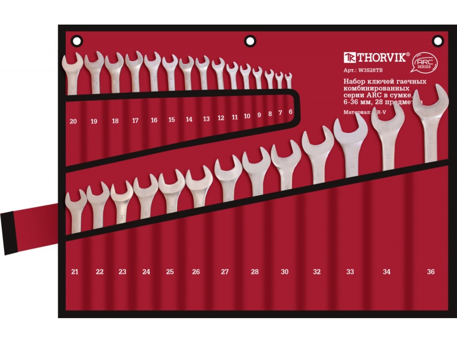 Набор ключей гаечных комбинированныхсерии ARC в сумке, 13302 мм, 28 предметов Thorvik W3S28TB