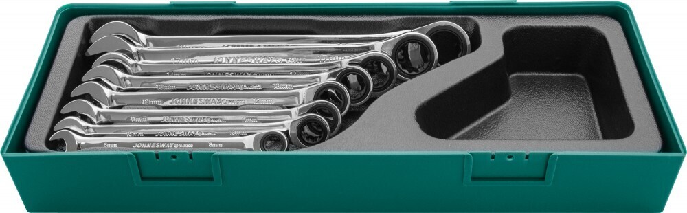 Гаечный комбинированный ключ представляет собой конструкцию, объединяющую рожковый профиль и накидной профиль с рабочей частью со встроенным храповым механизмом. Сочетание двух одноразмерных профилей компенсируют недостатки каждого в отдельности. Храповой механизм с колесом в 72 зуба обеспечивает высокий передаваемый крутящий момент благодаря применяемой хромованадиевой стали, закаленной особым способом. Малый, 5град., обратный ход делает ключ незаменимым в ограниченном рабочем пространстве. Ключи изготовлены по стандарту ANSI, имеют трехслойное хромоникелевое покрытие, зеркально отполированы. Область применения Ключи гаечные комбинированные ключи - универсальные гаечные ключи, совмещающие в себе функционал и преимущества рожковых и накидных ключей. Зевы комбинированных ключей имеют одинаковые размеры. Именно сочетание сильных сторон рожковых и накидных ключей и нивелирование сторон слабых делают комбинированные ключи исключительно широко востребованными со стороны потребителей и применяемыми в самых разных сферах - производственной, ремонтной, авторемонтной, бытовой и других. Ключи гаечные с открытым и кольцевым зевами предназначены для монтажа либо демонтажа резьбовых соединений.