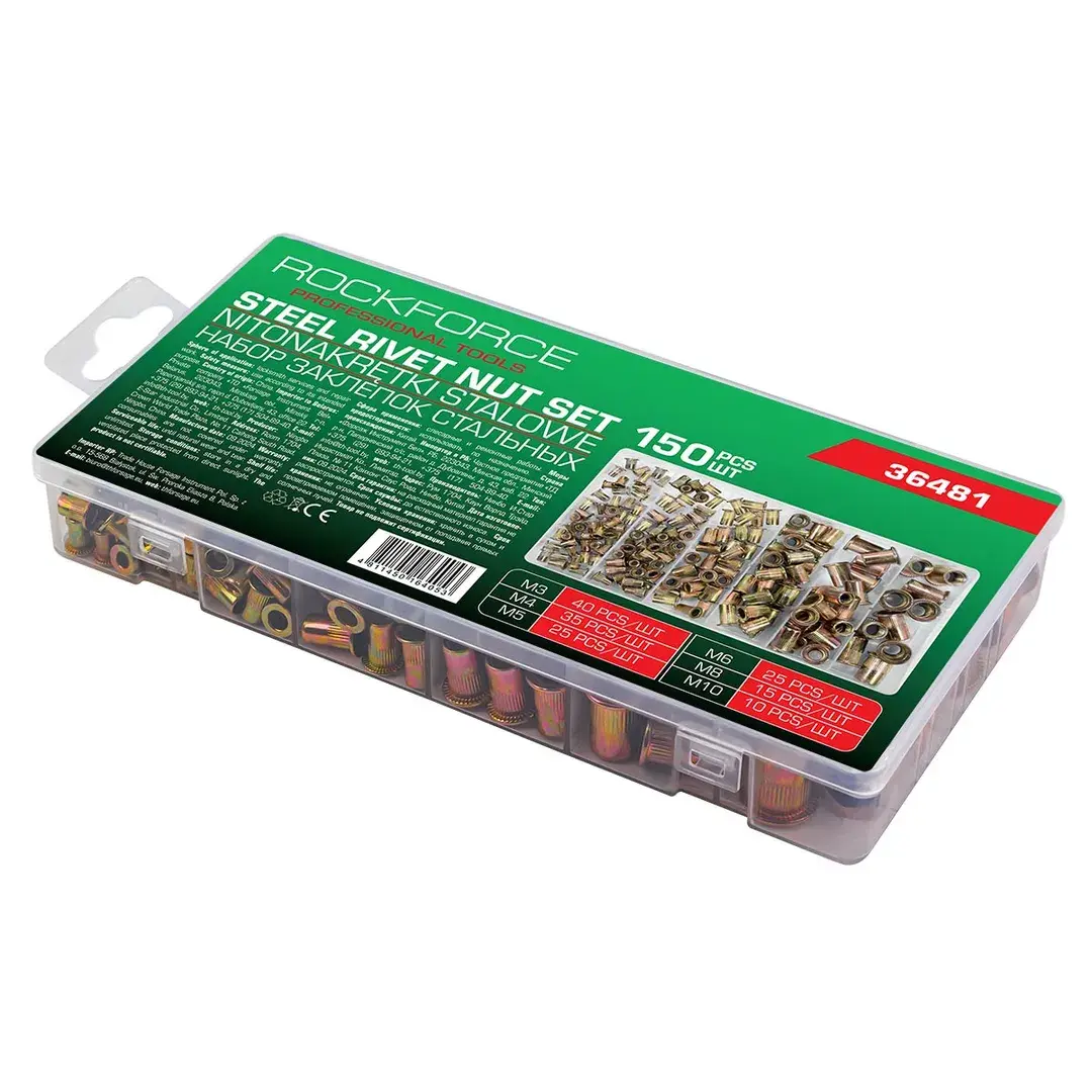 Заклепки резьбовые стальные М3-М10, набор 150пр. RockFORCE RF-36481