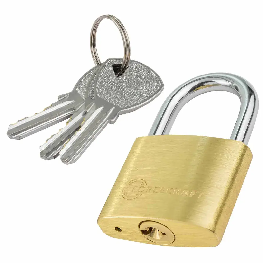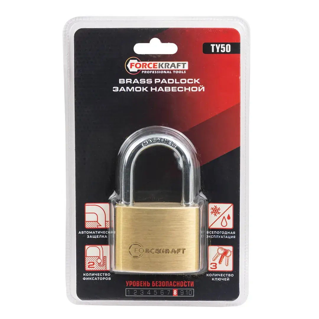 Замок навесной латунный 50мм (дужка 8мм, пространство для замка 35х27мм, 3 ключа) в блистере FORCEKRAFT FK-TY50
